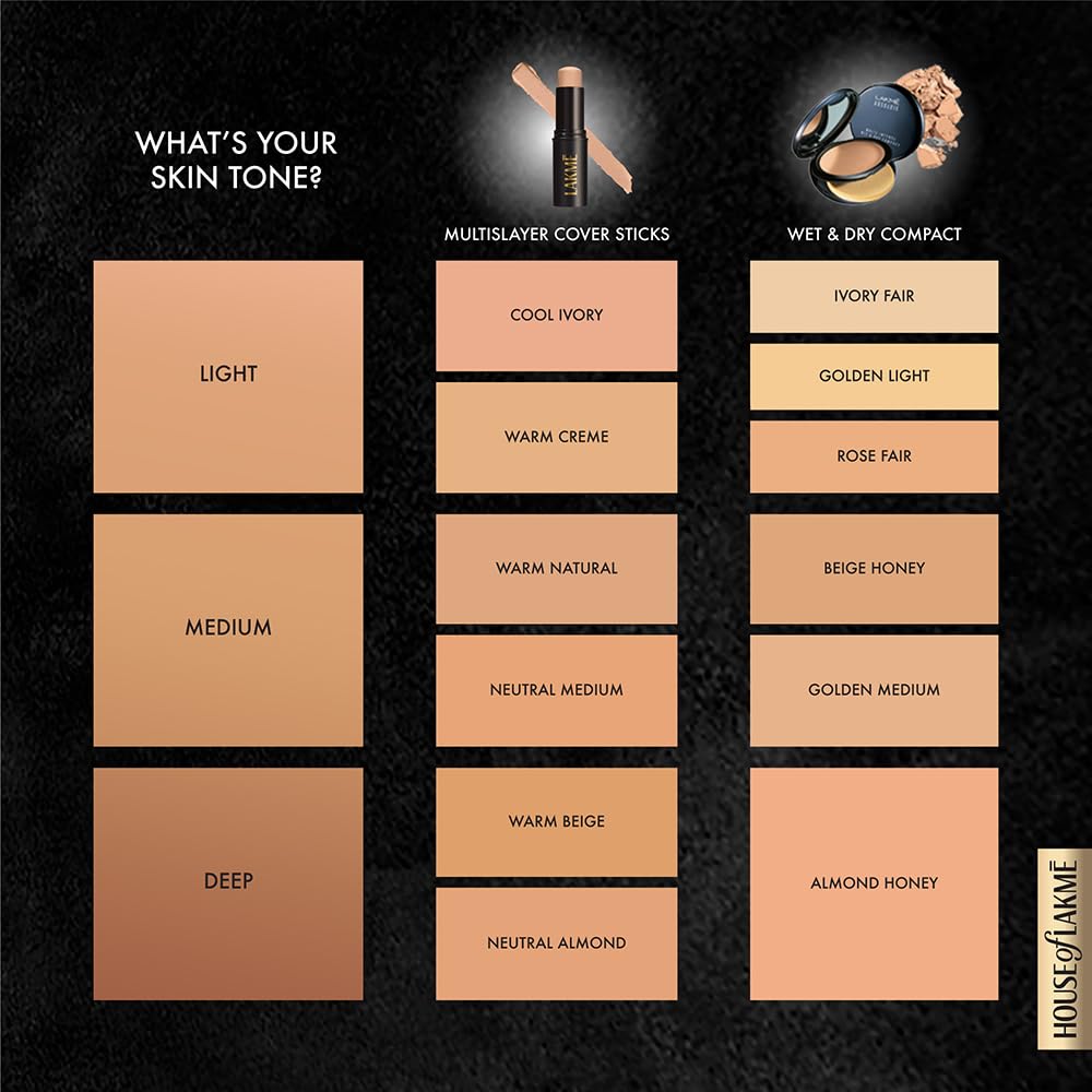Dreaming of flaunting flawless skin just like that of your favourite popstar? Look no further than the Multislayer Coverstick. High on coverage and easy to use, this ‘foundation in stick’ will help you ace your makeup game and take it up a notch. The Lakme Multislayer Coverstick delivers an even skin tone as it seamlessly blends into your skin to give a natural flawless finish. Light on your skin and smooth to the touch, its one stroke application will help you slay the day with finesse (EVEN FINISH). Our winning formula can also be used to spot conceal. All you have to do it prep your skin with primer, apply a dot and swipe across your face to blend it and get that flawless finish you desire. Wear it through the day because we promise there won’t be any sticky situations with this one. Available in 6 shades and specially developed for your skin tone(the Coverstick is a must have in your makeup bag. It can be best paired with the Facestick, Eye Shadow Palette, Lip Mousse and Lash Boost Mascara. Lakme products are specially crafted for your skin to ensure that every look created using our products leaves you looking 10/10. Lakme is India’s No. 1 makeup brand and is also PETA approved.