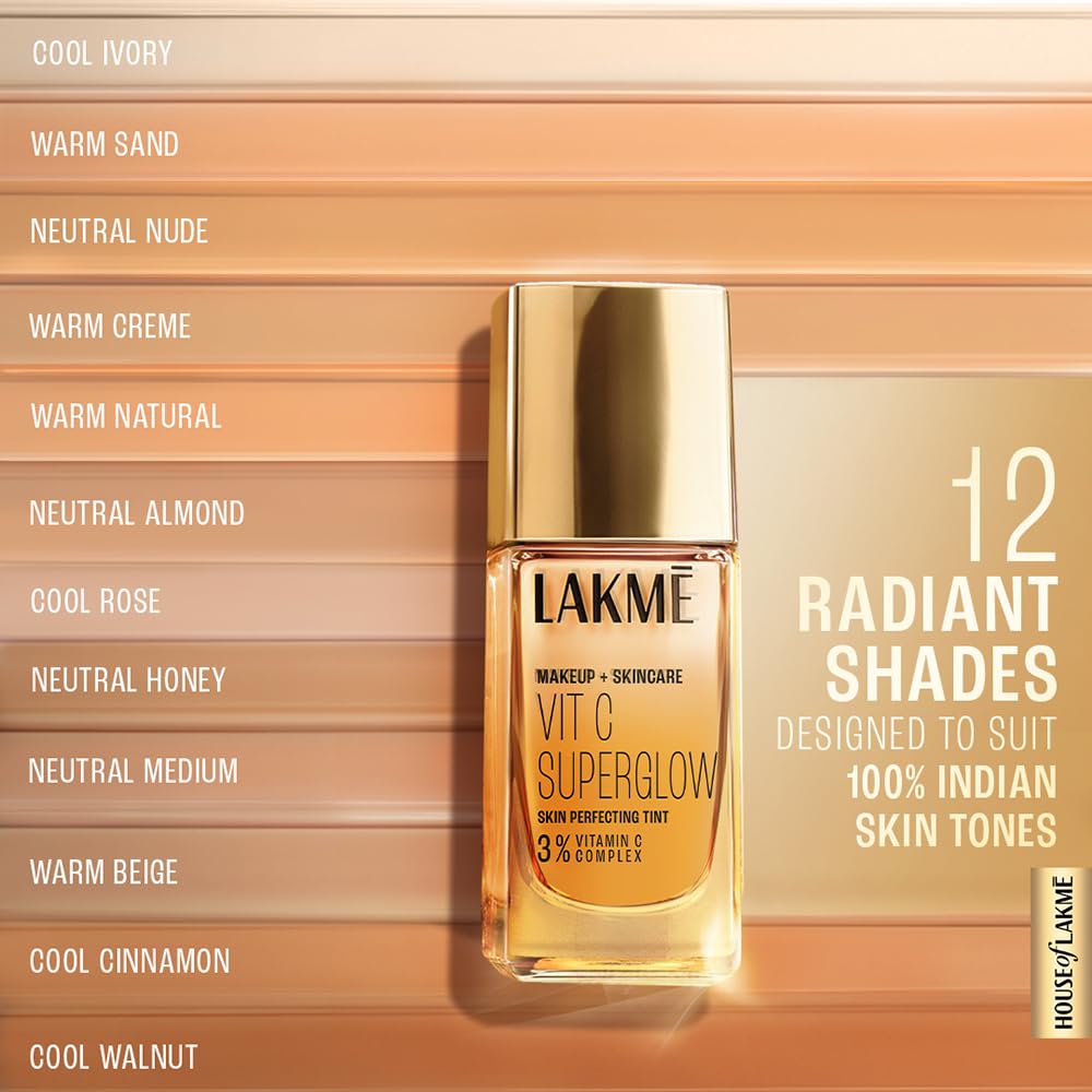 Lakme Makeup+Skincare VitC Superglow Skin Perfecting Tint Neutral Almon N340 25ml