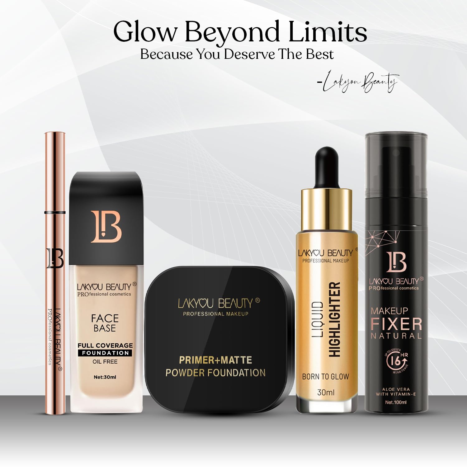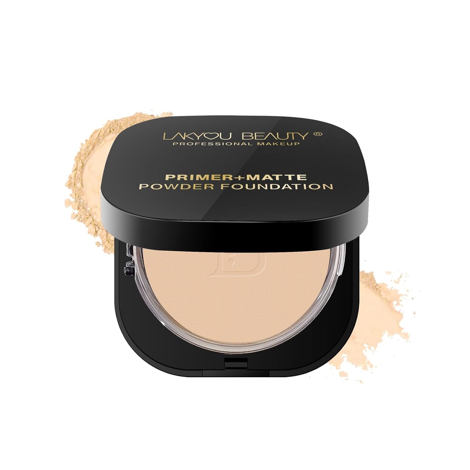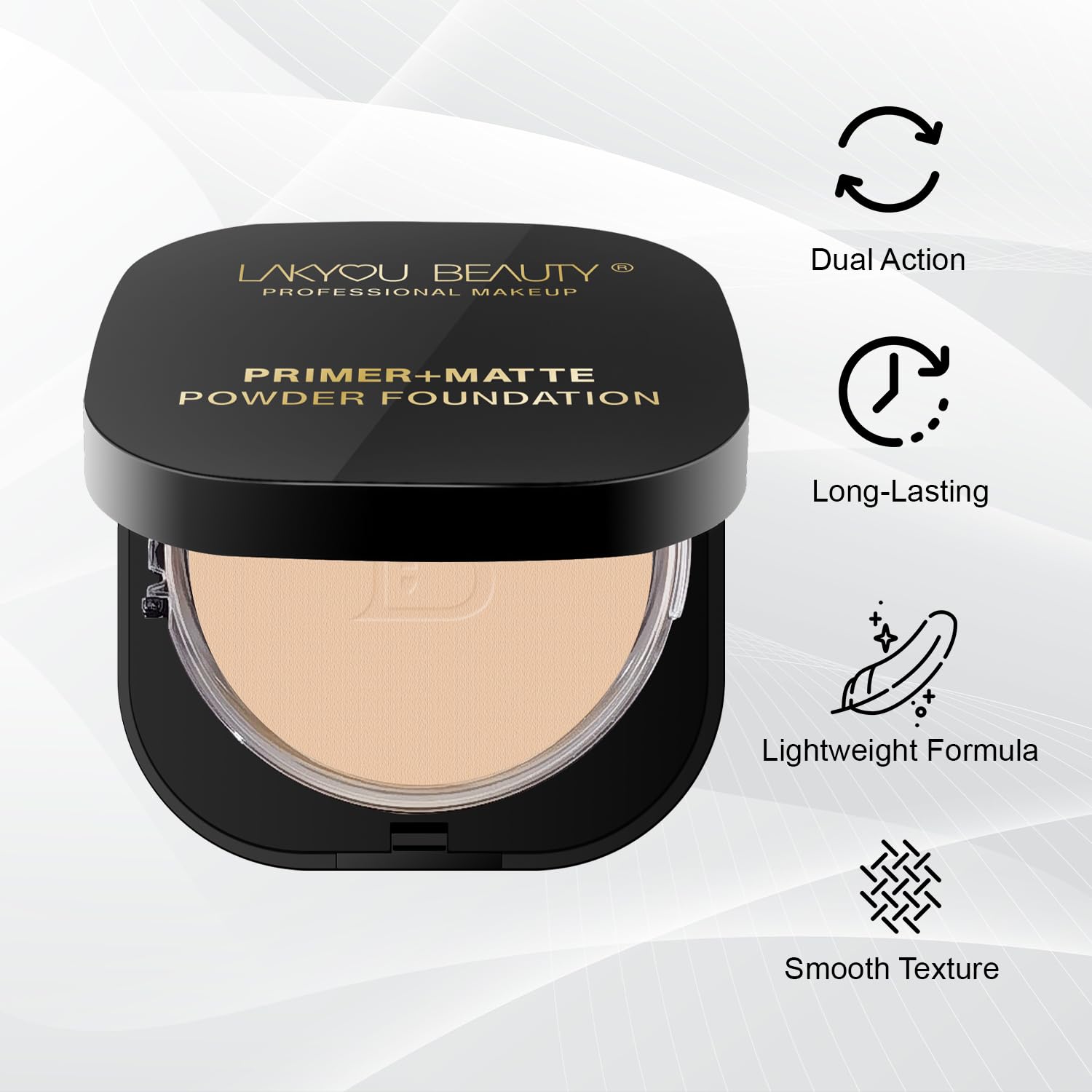 Lakyou Beauty Primer + Matte Compact Powder Foundation 15g, Shade-03(Natural Beige) | All-in-One Primer & Foundation | Lightweight Matte Finish | Long-Lasting | Oil-Control