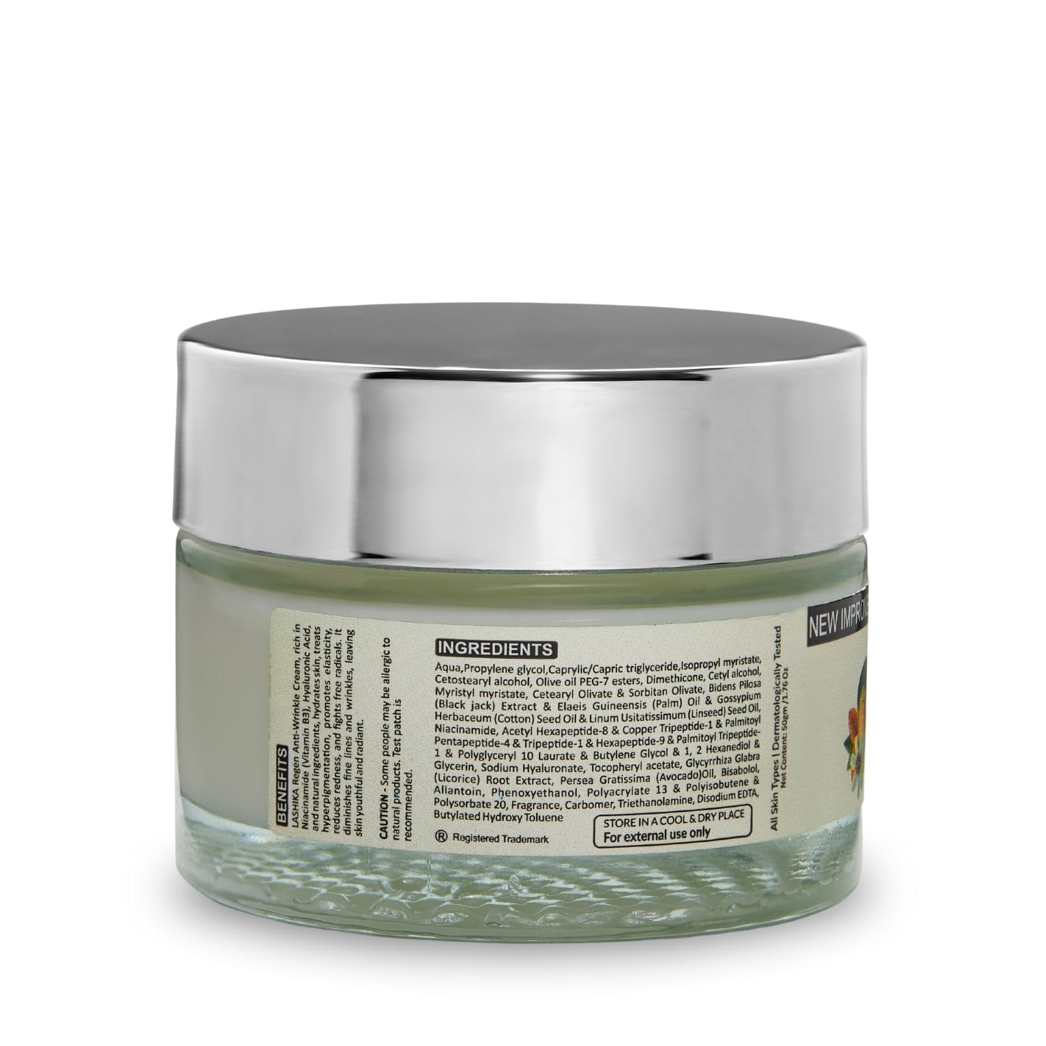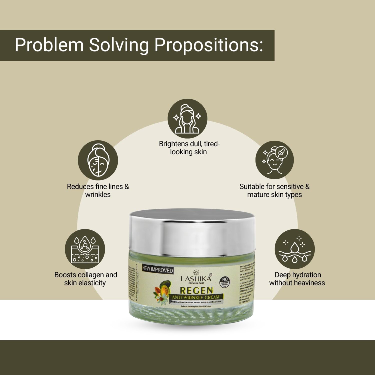 Lashika Regen Anti Wrinkle Cream For Women | With Niacinamide, Peptides & Avocado Oil | Helps in Reducing Fine Lines & Wrinkles | Hydrates Skin & Reduces Redness | Paraben Free – 50g