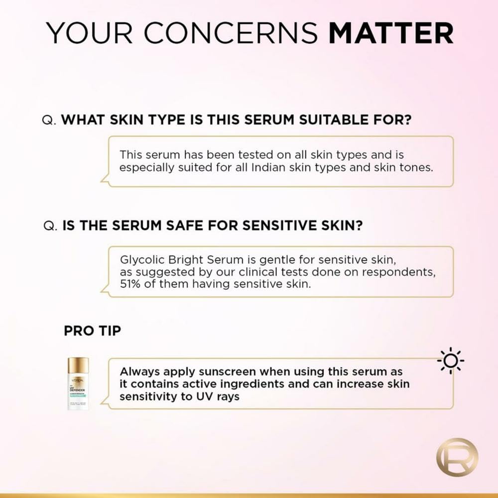 L’Oreal Paris Glycolic Bright 8% [Melasyl + Niacinamide] Face Serum for Brightening Dark Spots 30ml