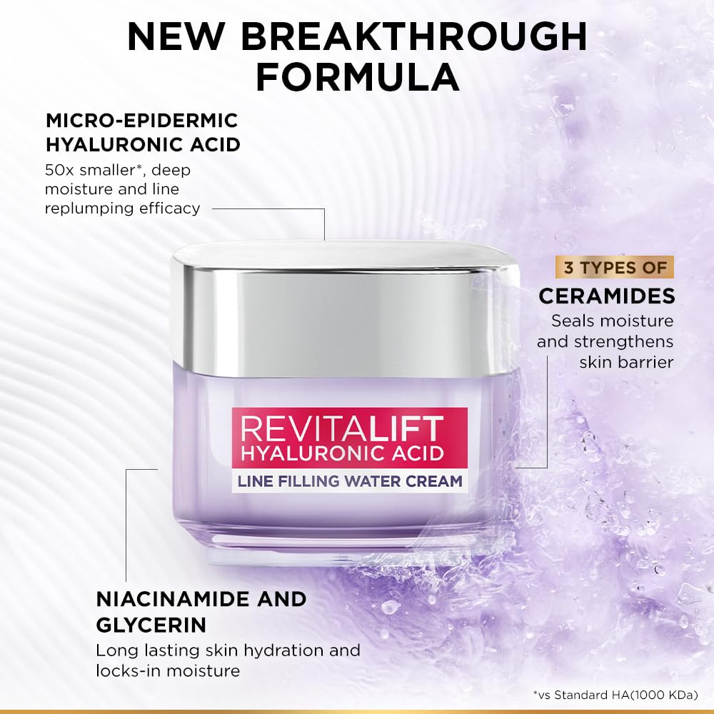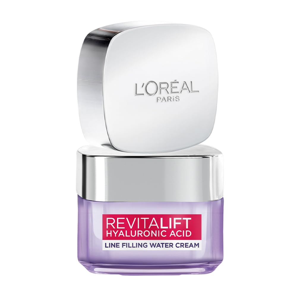 L’Oréal Paris Hyaluronic Acid Line Filling Water Cream, Moisturiser, Hyaluronic Acid for Hydration, Replumps Skin, Ceramides for Skin Barrier Repair, Reduces Fine Lines, 15ml