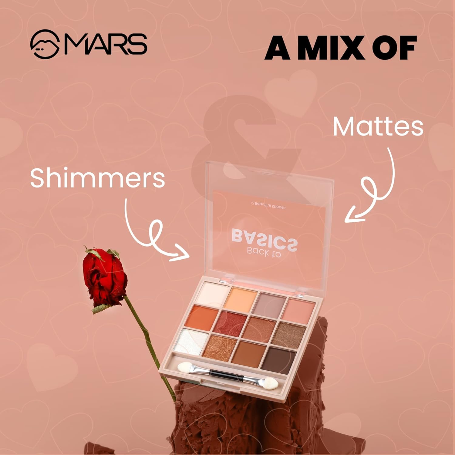 MARS 12 Shades Back to Basics Eyeshadow Palette with Free Applicator | Matte | Shimmer | Beginner Friendly & Long Lasting Eye Shadow Palette (14.4 gm) (Shade-02)