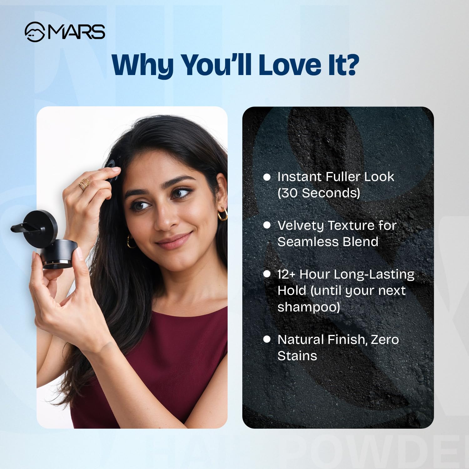 MARS Fill & Fix Hair Cover Up Powder (3.8 gm) (Dark Brown) | Upto 12 Hr Long-Lasting & Sweatproof | Natural Fuller Look For Bald Spots & Thinning Areas | Easily Washable