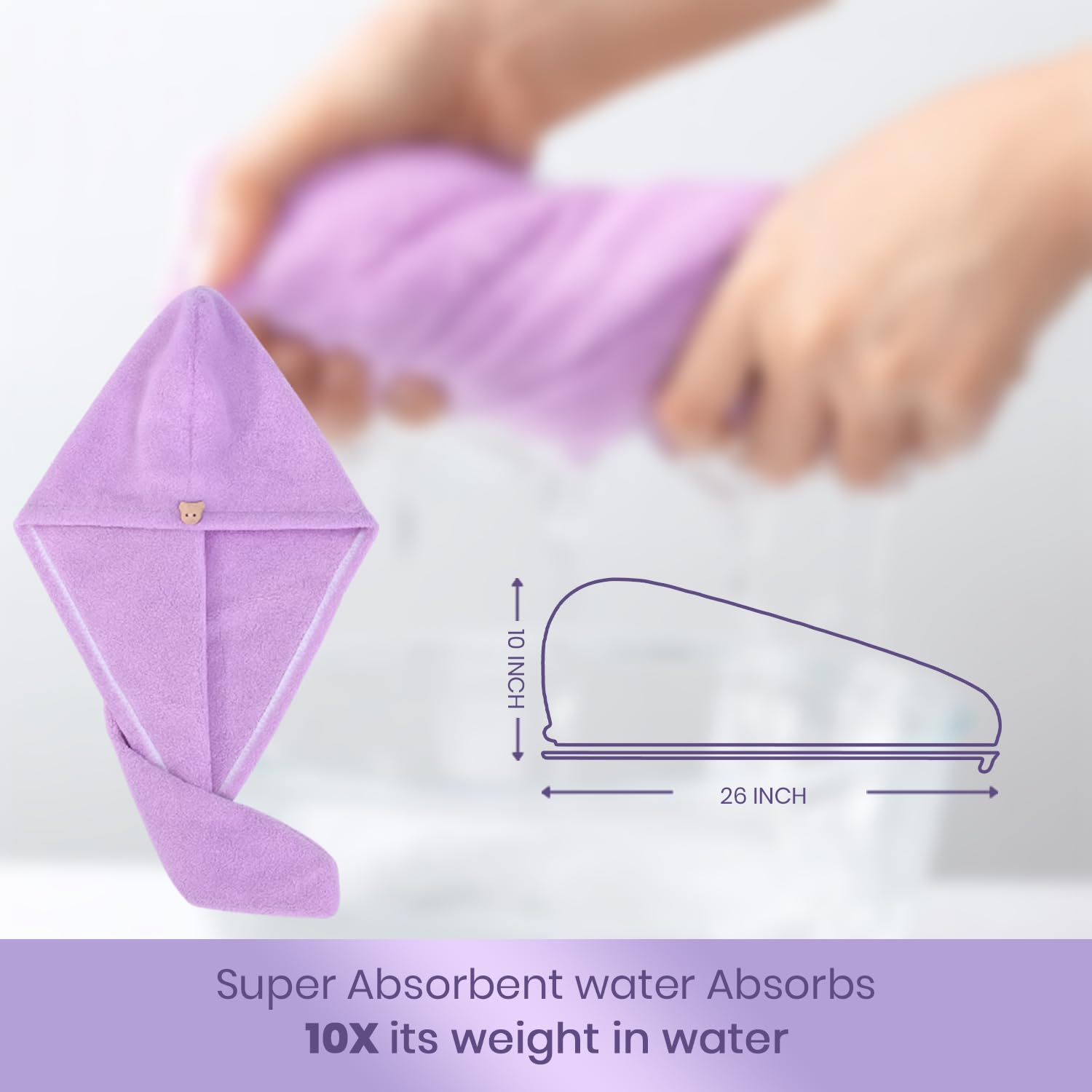 Material :- Our microfiber hair wrap towel for women is made from a revolutionary microfiber material that is extremely soft to the touch, super absorbent and fast drying. Size:-10 X 25 (in inches) or 25 X 65( in Centimeter).