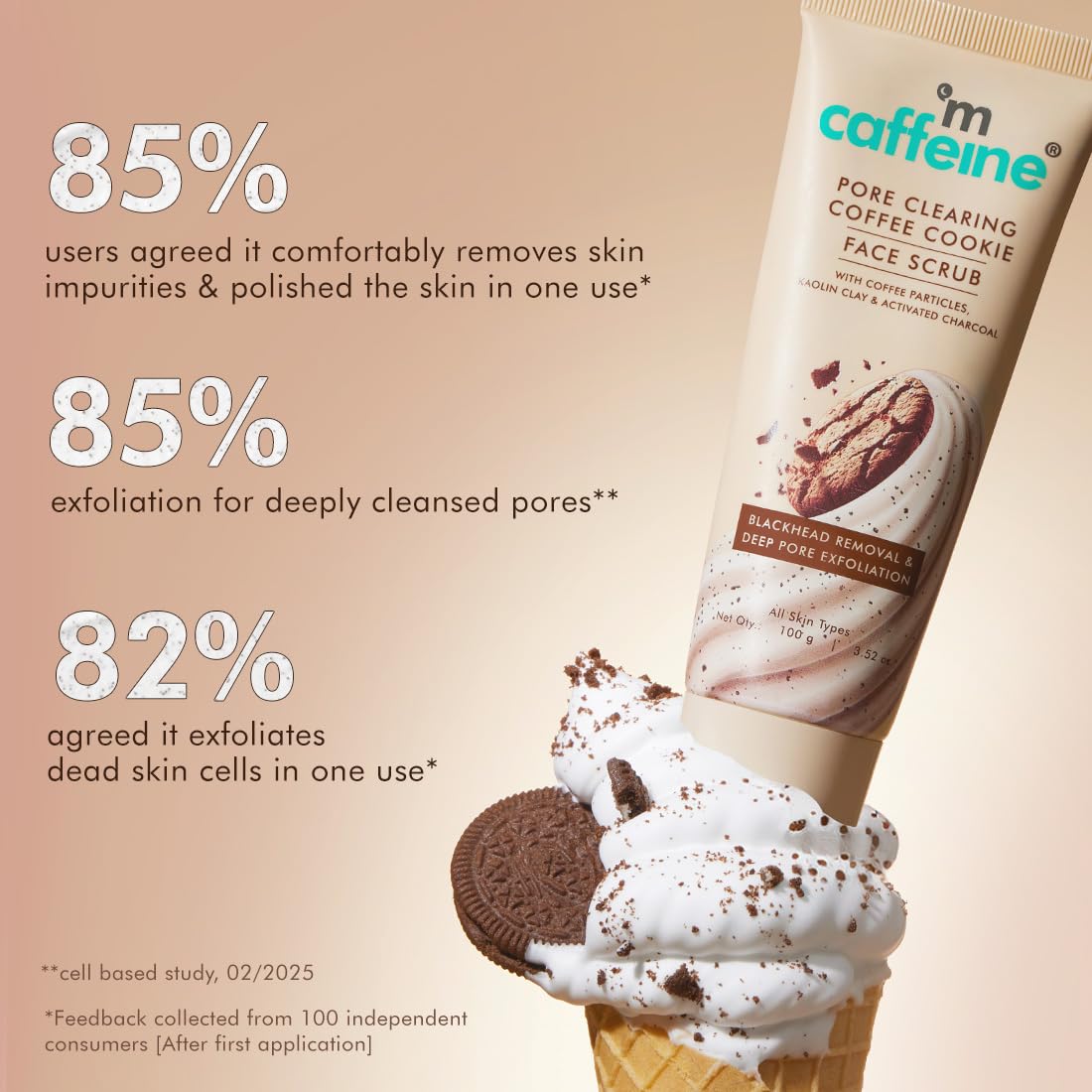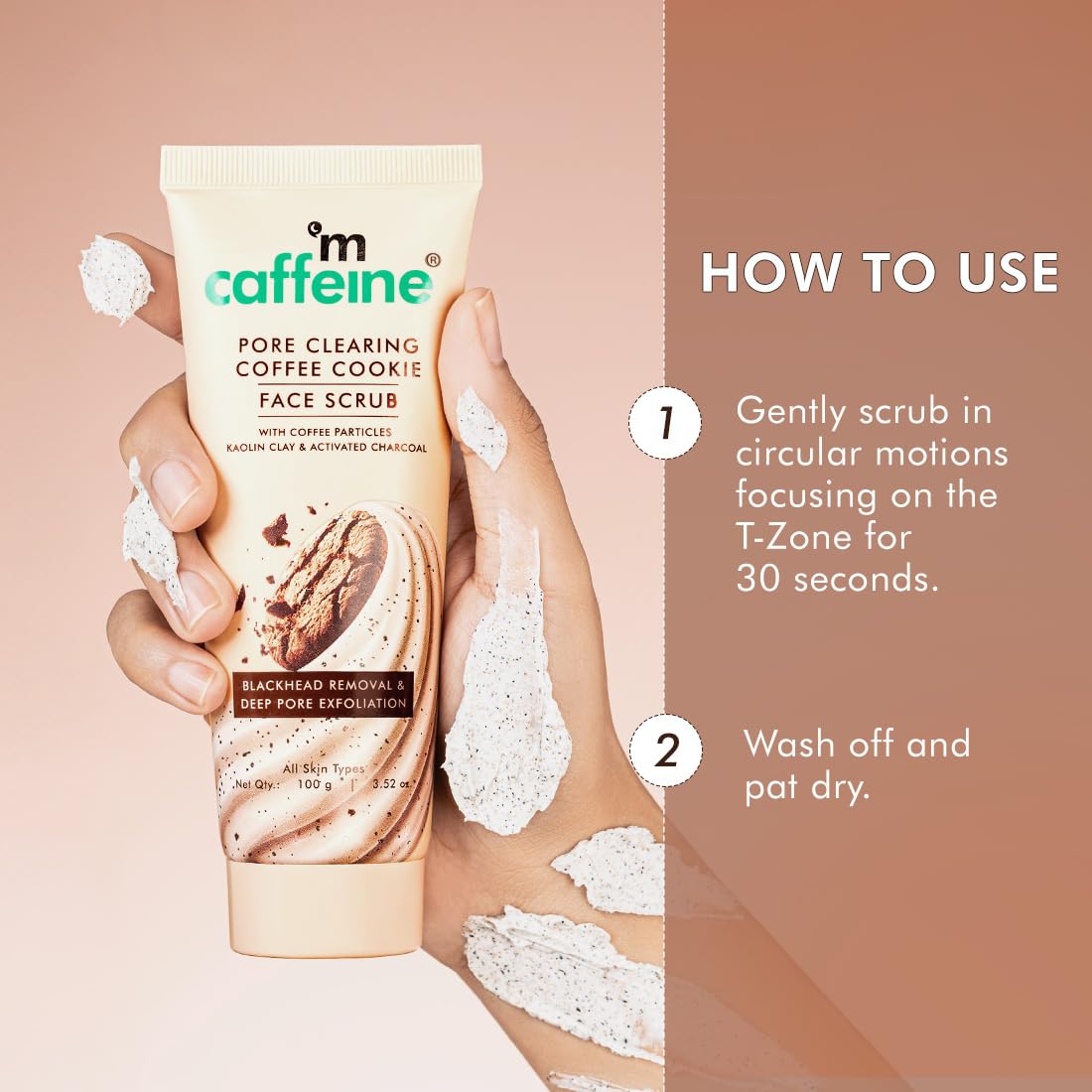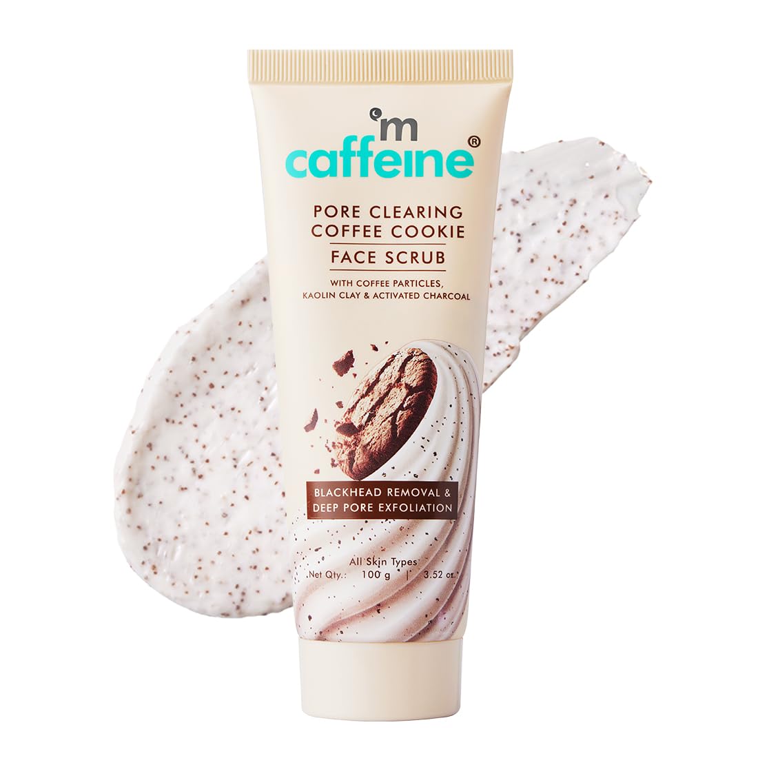 mCaffeine Pore Clearing Coffee & Cookie Face Scrub | Remove Blackheads, Detan & Exfoliate Dead Skin | 4.5% Exfoliants – Walnuts, Coffee, Charcoal, Clay | Glowing Skin Face Scrub for Women & Men – 100g