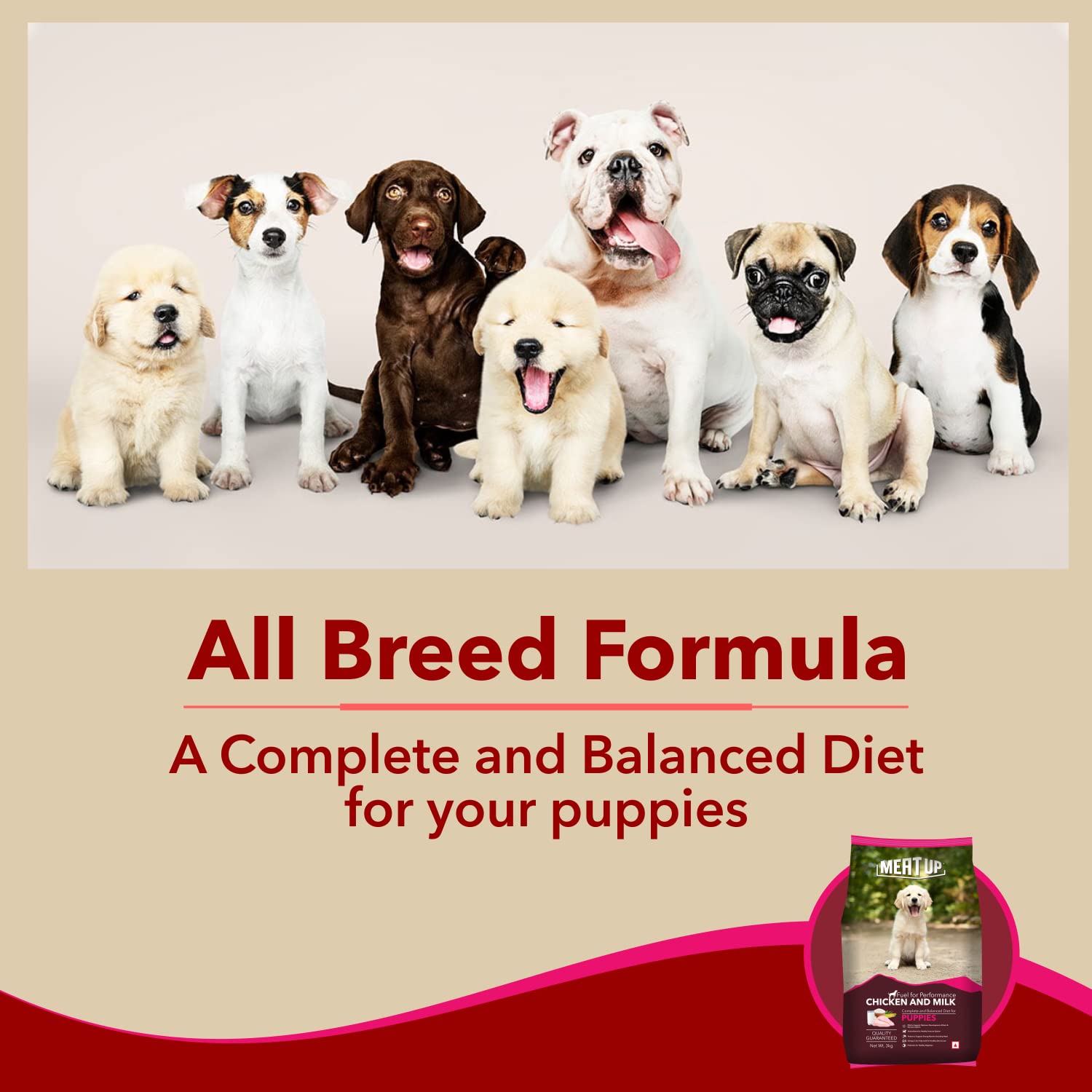 Meat up Chicken and Milk Puppy food is a complete and balanced diet formulated for all breeds. It is highly palatable and loaded with goodness that any breed of puppy will love.