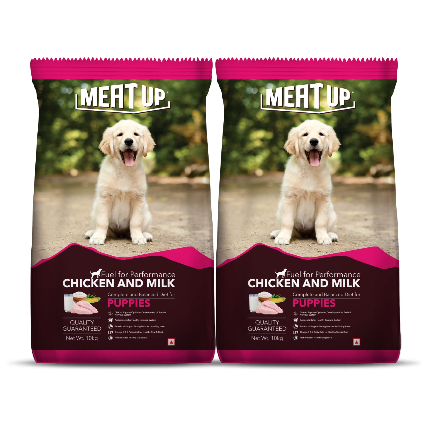 Meat Up Puppy Dry Dog Food 10kg + 10kg (Free) 20kg Chicken and Milk FlavourDevelopment of Brain and Nervous System Maintain Digestive Health Vitamins and Minerals