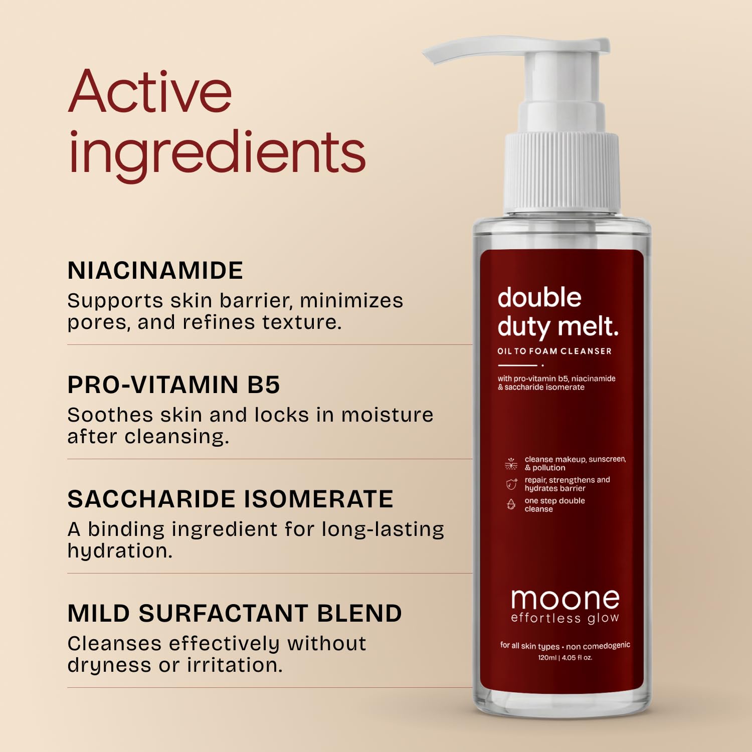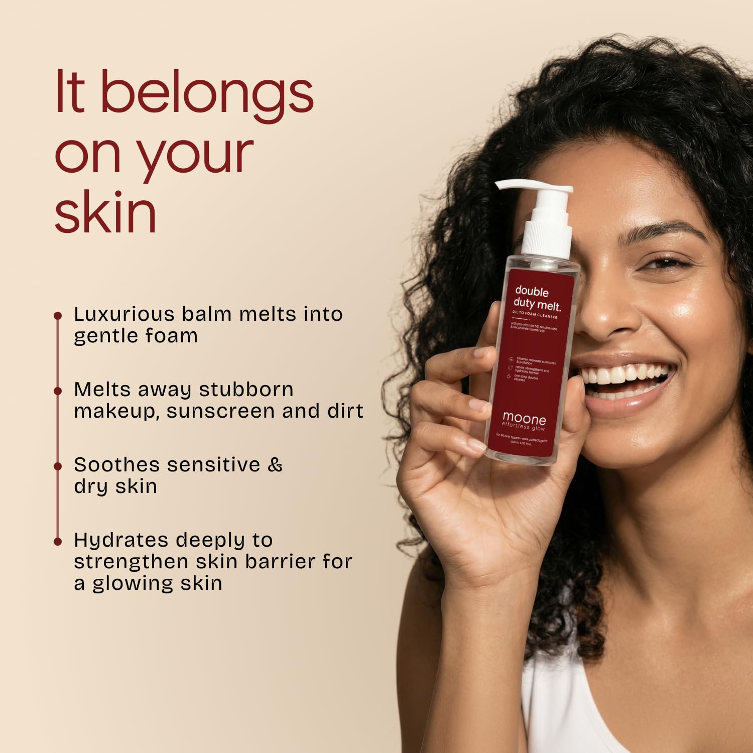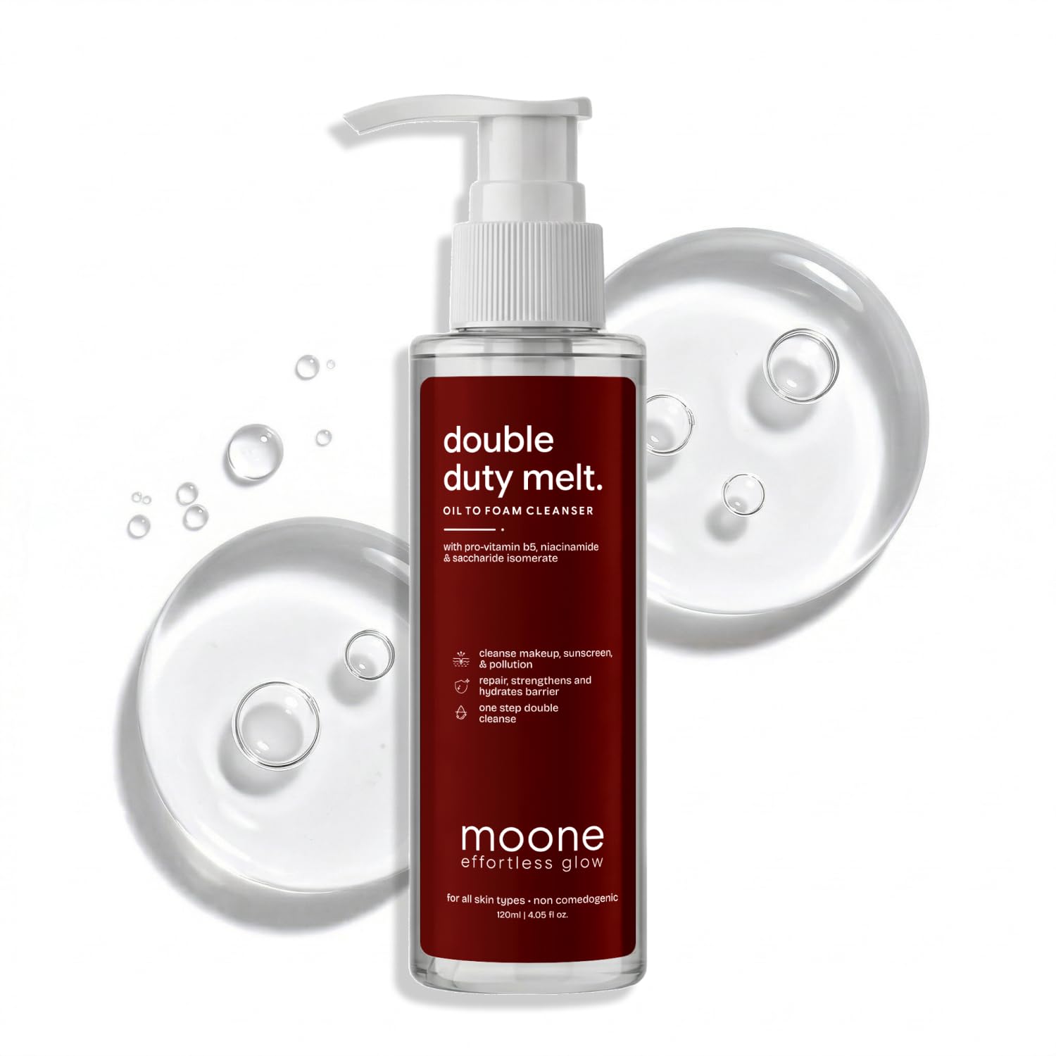 Moone Double Duty Melt – Oil to Foam Cleanser – 120 ML | Hydrating Makeup Remover Oil Cleanser | Removes Sunscreen, Pollution & Impurities | Gentle Face Cleanser | Safe For Sensitive & Acne Prone Skin