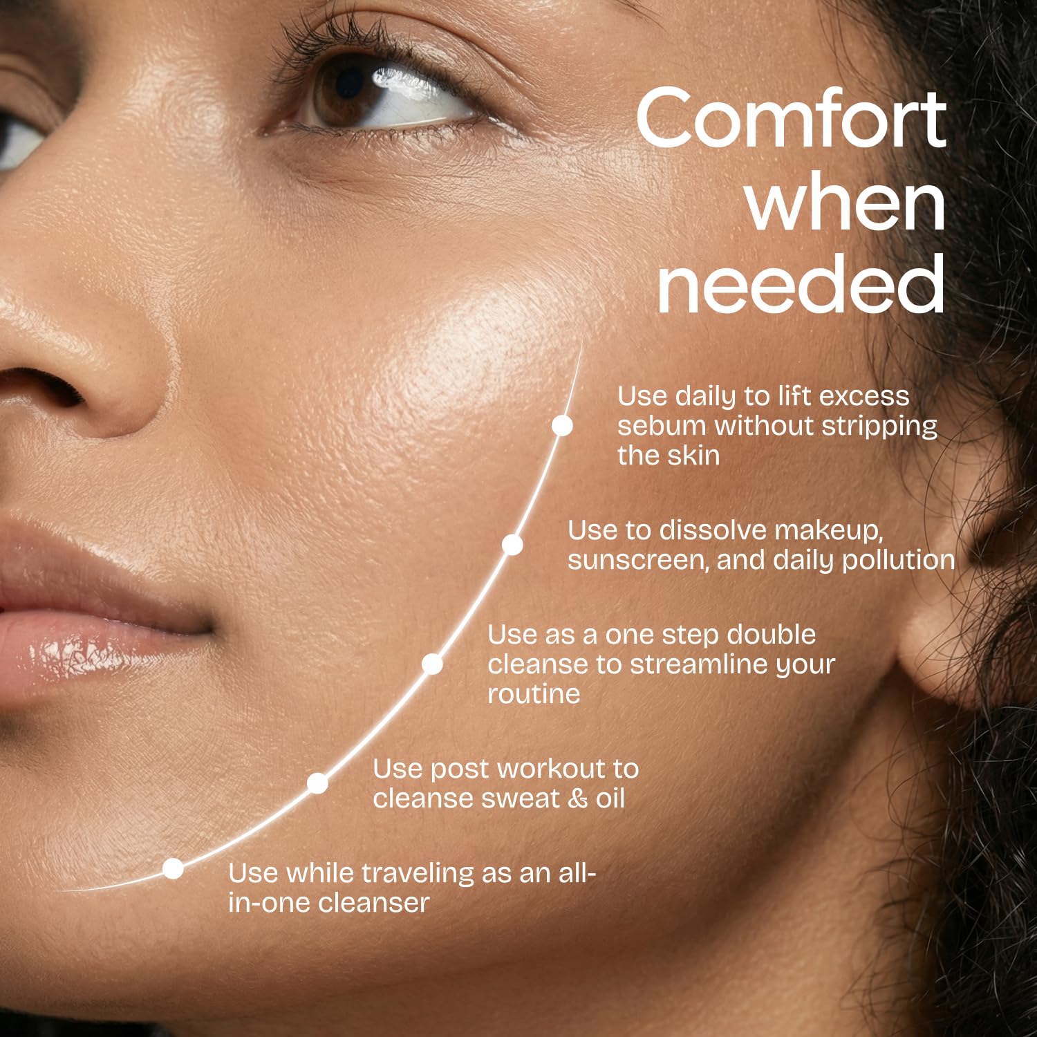 Cleans as effectively as micellar water makeup remover while functioning as an everyday oil cleanser for face, maintaining hydration levels and supporting a healthy, resilient skin barrier.