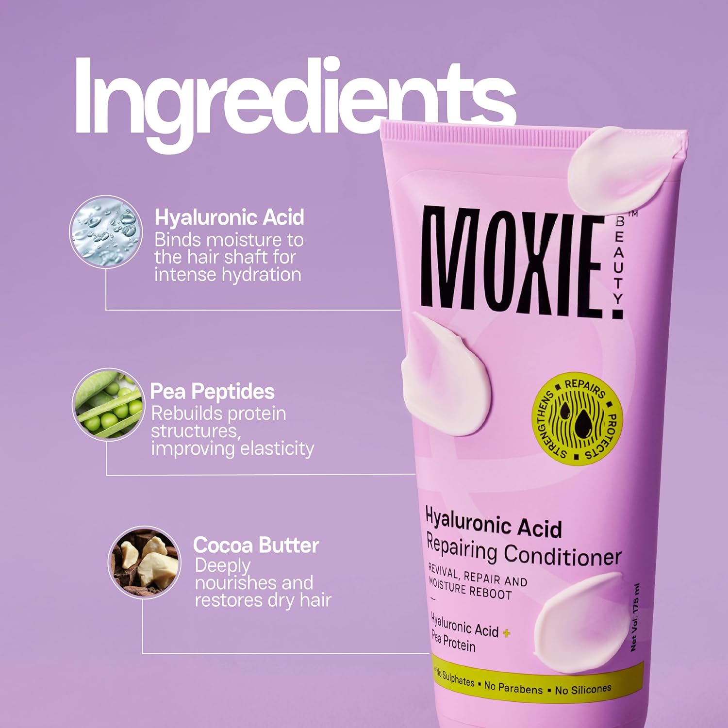 Moxie Beauty Hyaluronic Acid Repair Conditioner | Deep Hydration | Strengthens & Smooths | Frizz Control & Damage Repair | Lightweight & Silicone-Free | 175ml
