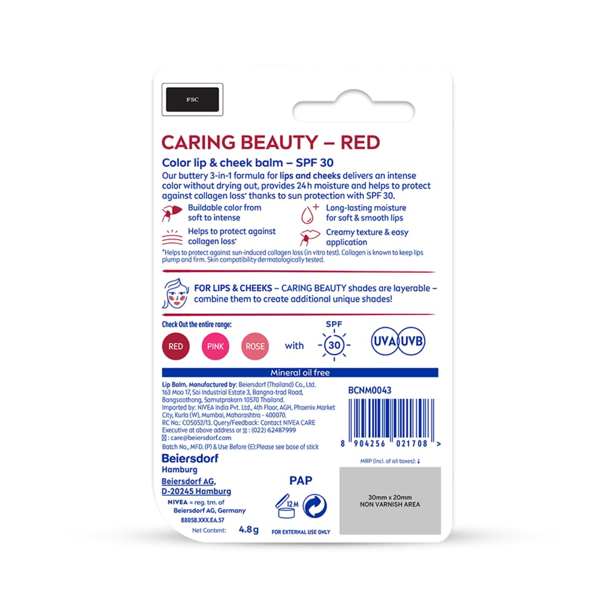 NIVEA Lip Caring Beauty Red Lip Balm | Lip & Cheek Tint with SPF 30