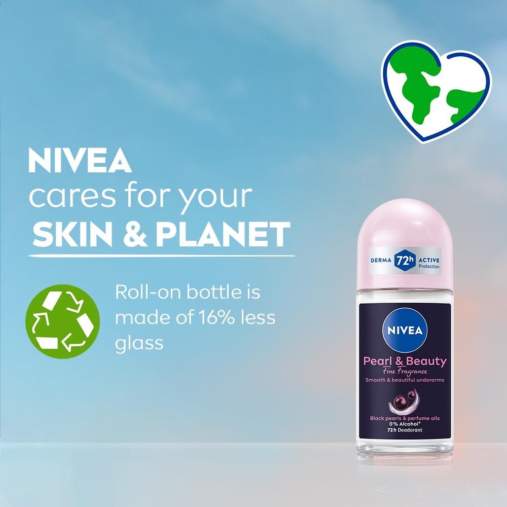NIVEA Women Deodorant Underarm Roll On Pearl & Beauty Fine Fragrance | Long Lasting Fragrance with Floral Scent | 72 Hour active Odour Protection | 0% Alcohol | Dermat approved | 50 ml
