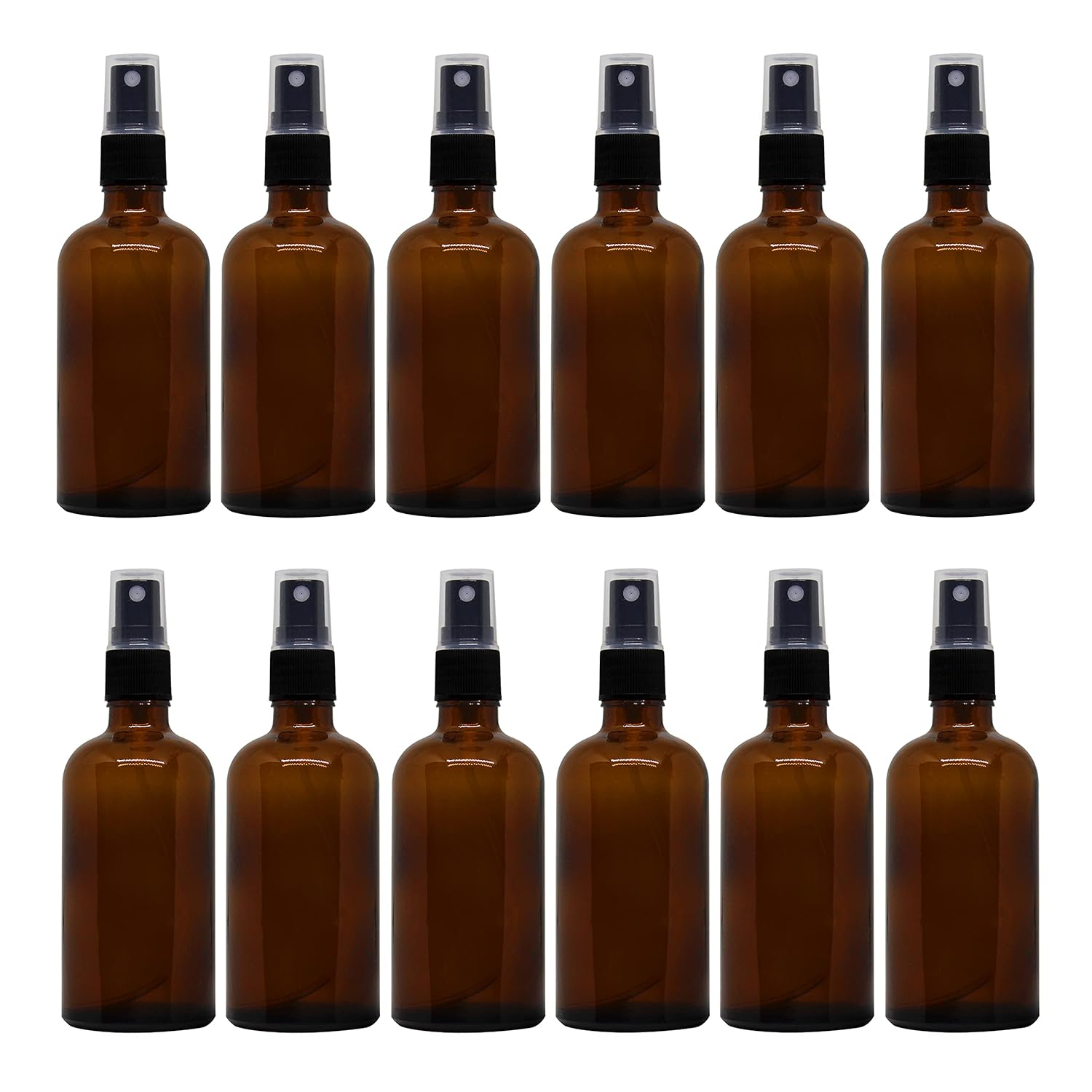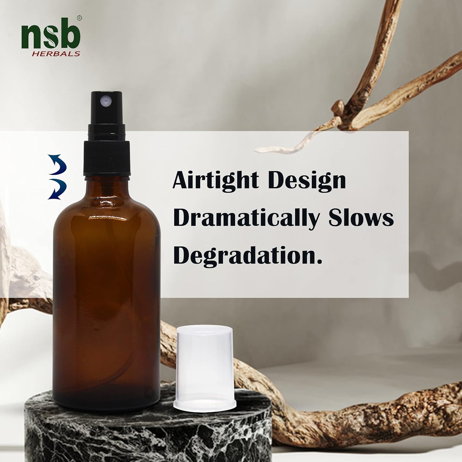 nsb HERBALS 100 ml Refillable Amber Fine Mist Spray Glass Bottles with Leak Proof Spray Pump for Multipurpose uses for DIY Perfume, Essential Oils, Blends, Aromatic Water, Beauty Products (Pack of 12)