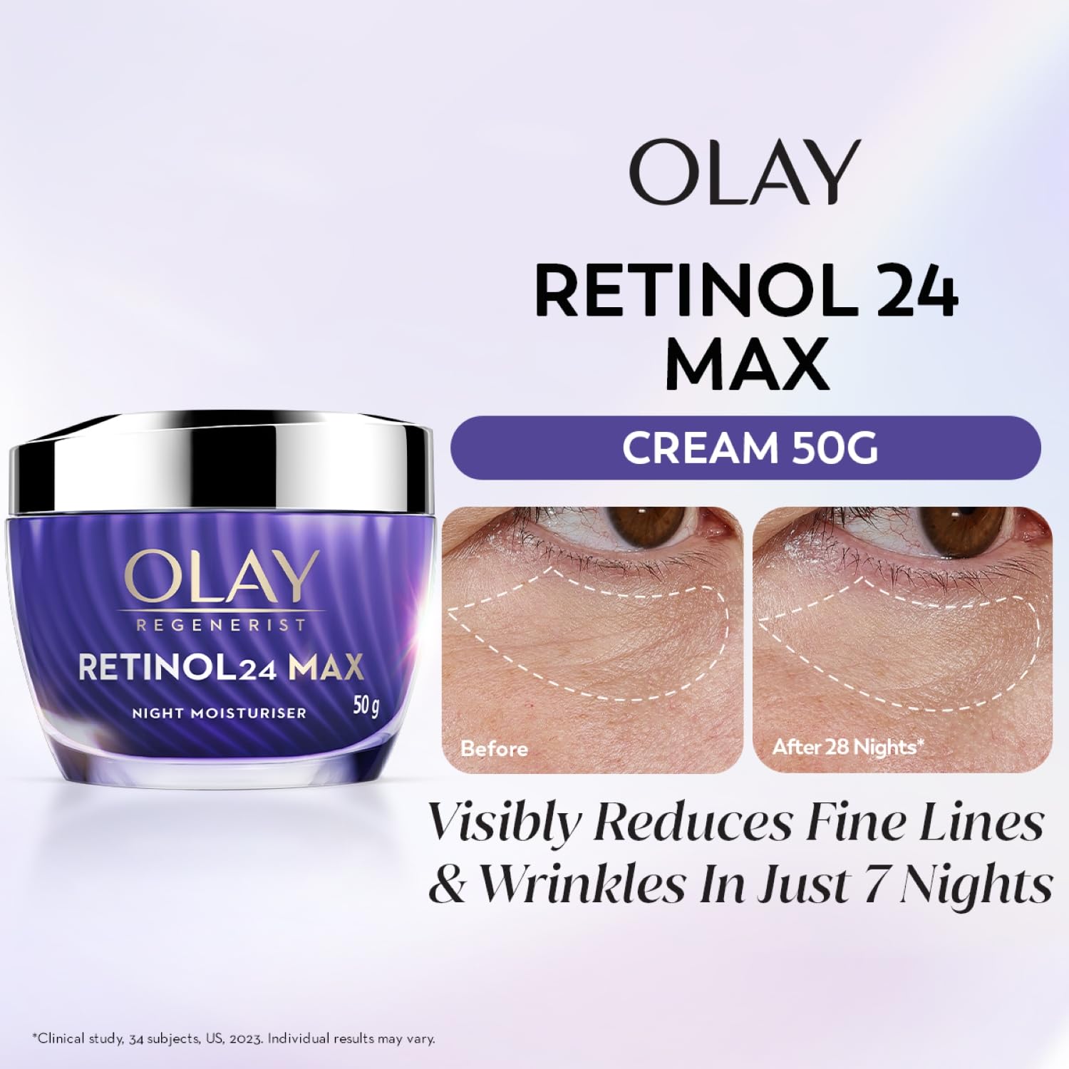 Retinol24 Formula: Contains Vitamin B3 and Retinoid Complex to visibly smooth fine lines and wrinkles. Visible Results: Reduces the appearance of fine lines in just 7 nights. Max Repair, Max Hydration: Provides intense hydration and repair for a youthful-looking complexion. Fragrance-Free: Gentle formula suitable for sensitive skin.