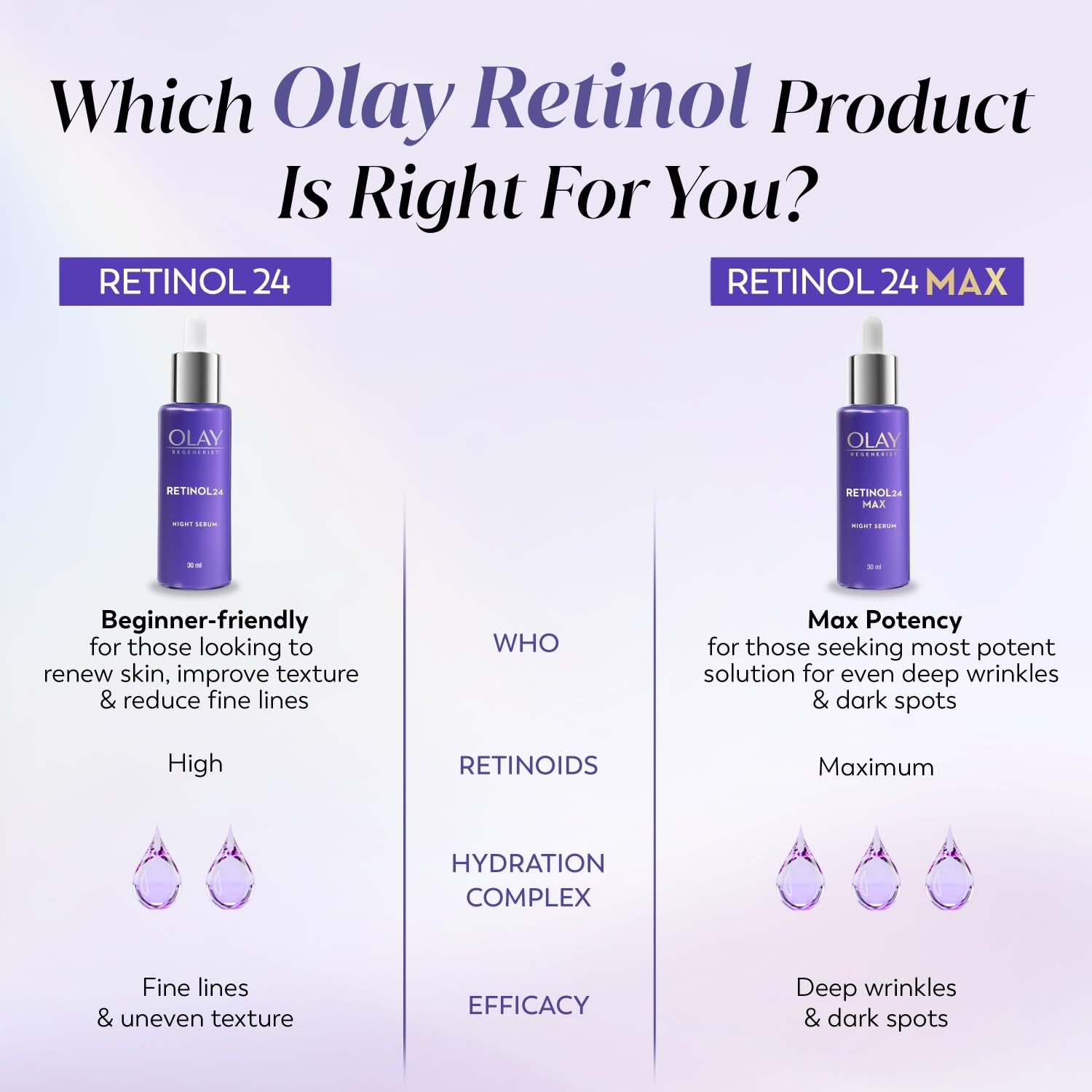 Olay Retinol24 Max Night Serum l Visibly Reduces Fine Lines in 7 Nights | Max Repair, Max Hydration l No Redness or Irritation | Fragrance Free l Normal, Oily, Dry and Combination Skin l 30ml
