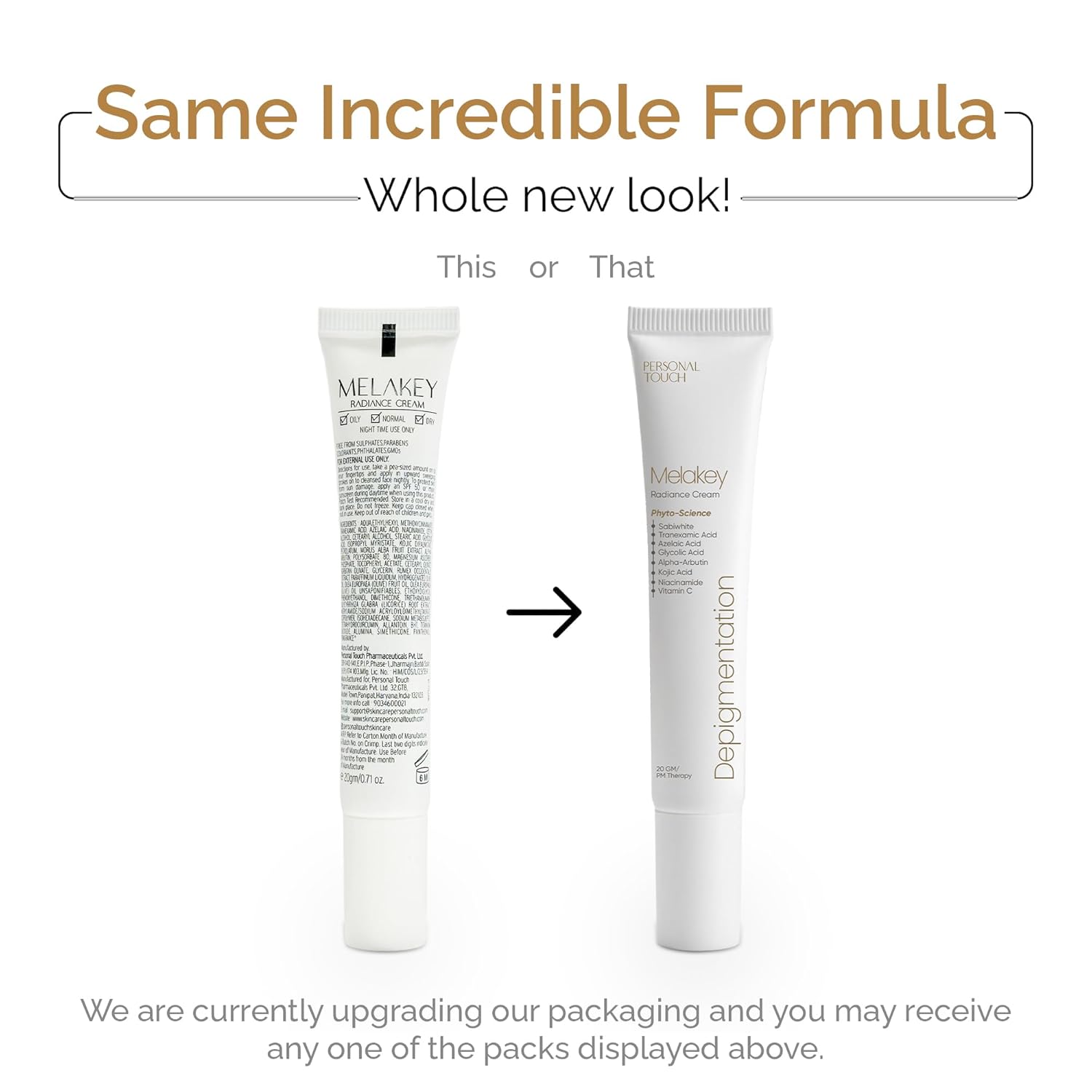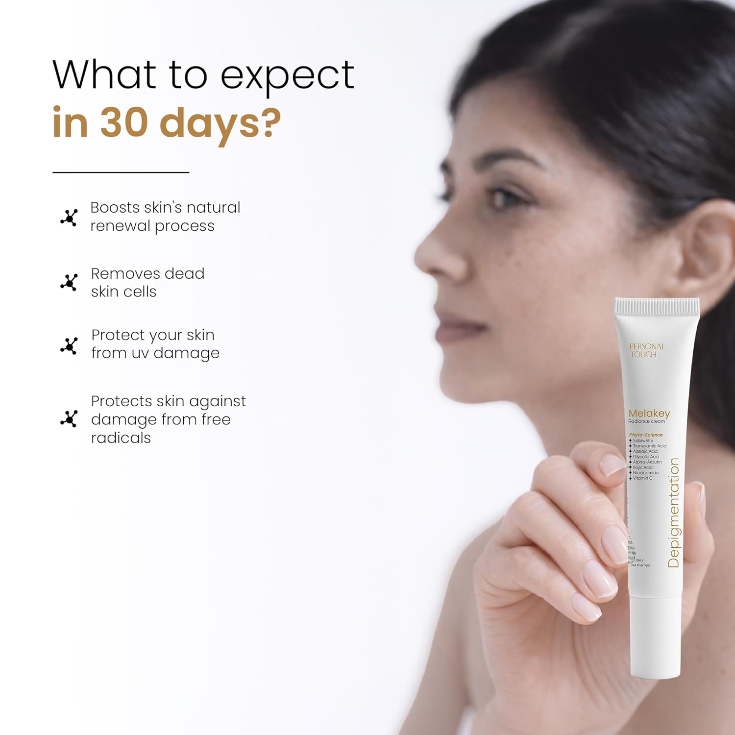 Personal Touch Melakey Radiance Cream for Hyperpigmentation & Melasma | 5% Azelaic Acid | Dark Spot Corrector with Glycolic Acid & Niacinamide for Even Skin Tone | 20gm