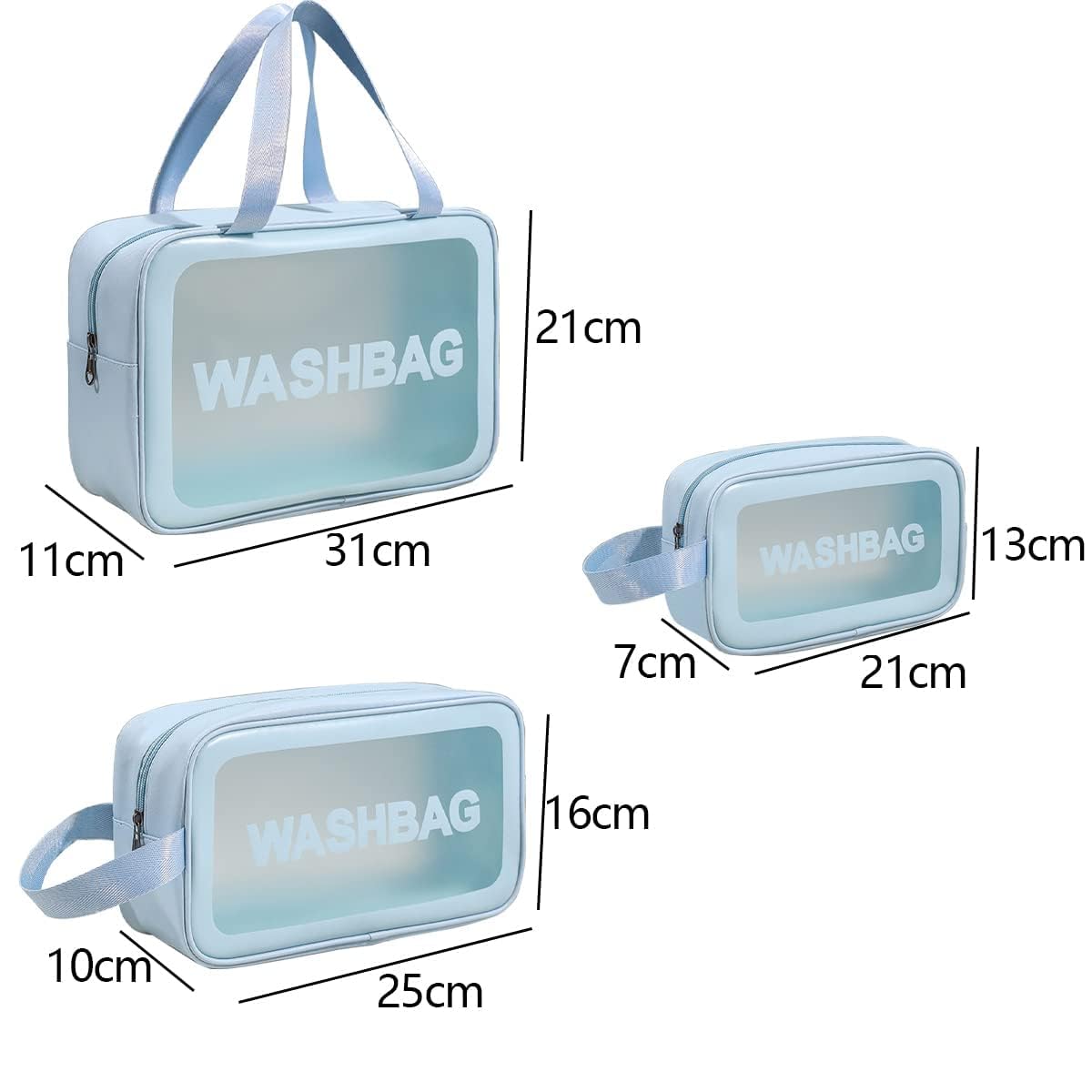 According to different sizes, wash bags can be used to hold different sizes of cosmetics and toiletries, and they are suitable for different scenarios such as dressing rooms, washrooms, swimming pools, gyms, etc. You can choose to use them according to your needs.
