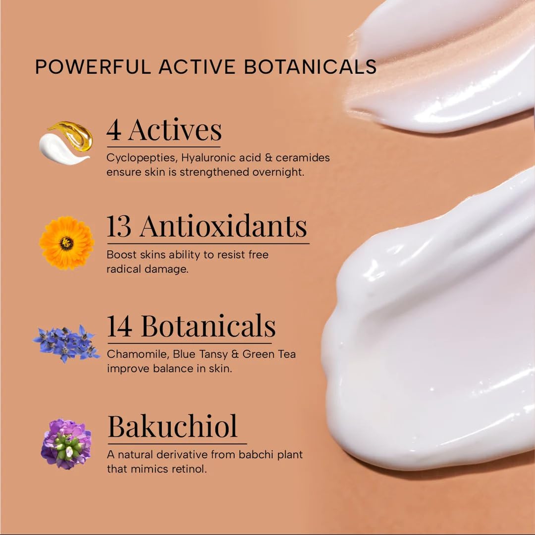 Retinol Night Cream for Face Alternative – Powered by Bakuchiol, a natural alternative to retinol and retinal, this anti ageing night cream for women and men may help reduce fine lines, wrinkles, and signs of fatigue, which may give you a youthful, glowing skin overnight.