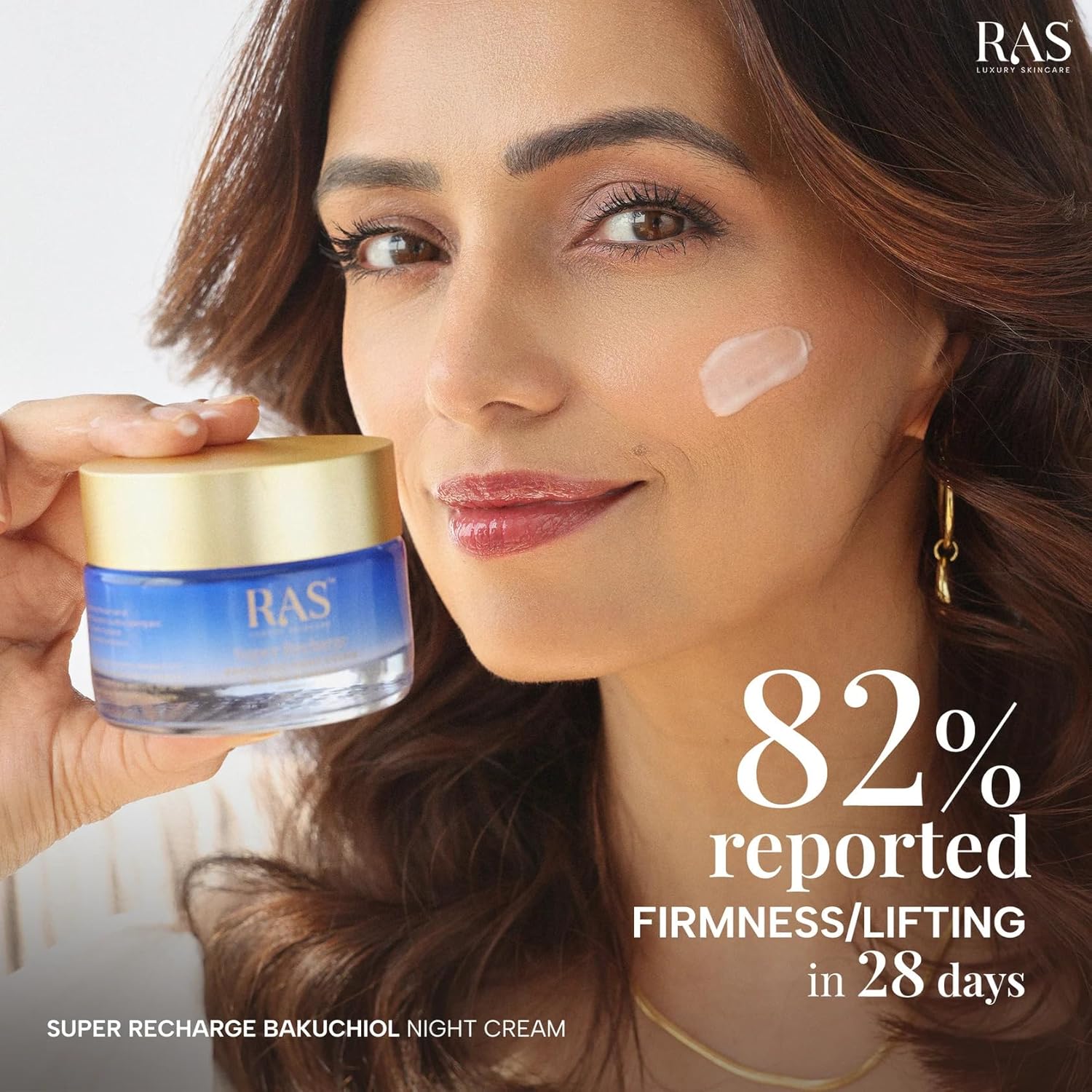 Ras Luxury Oils Super Recharge Night Cream with Bakuchiol (Natural Retinol) & Peptides| Anti-aging Formula | Hydrates & Strenghten Skin Barrier | Reduces Fine Lines & Wrinkles | Luxury Skincare