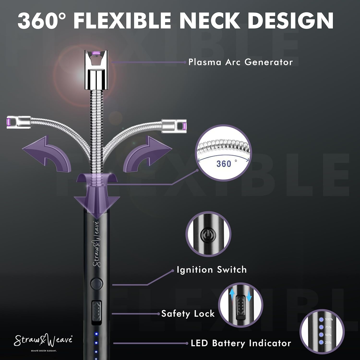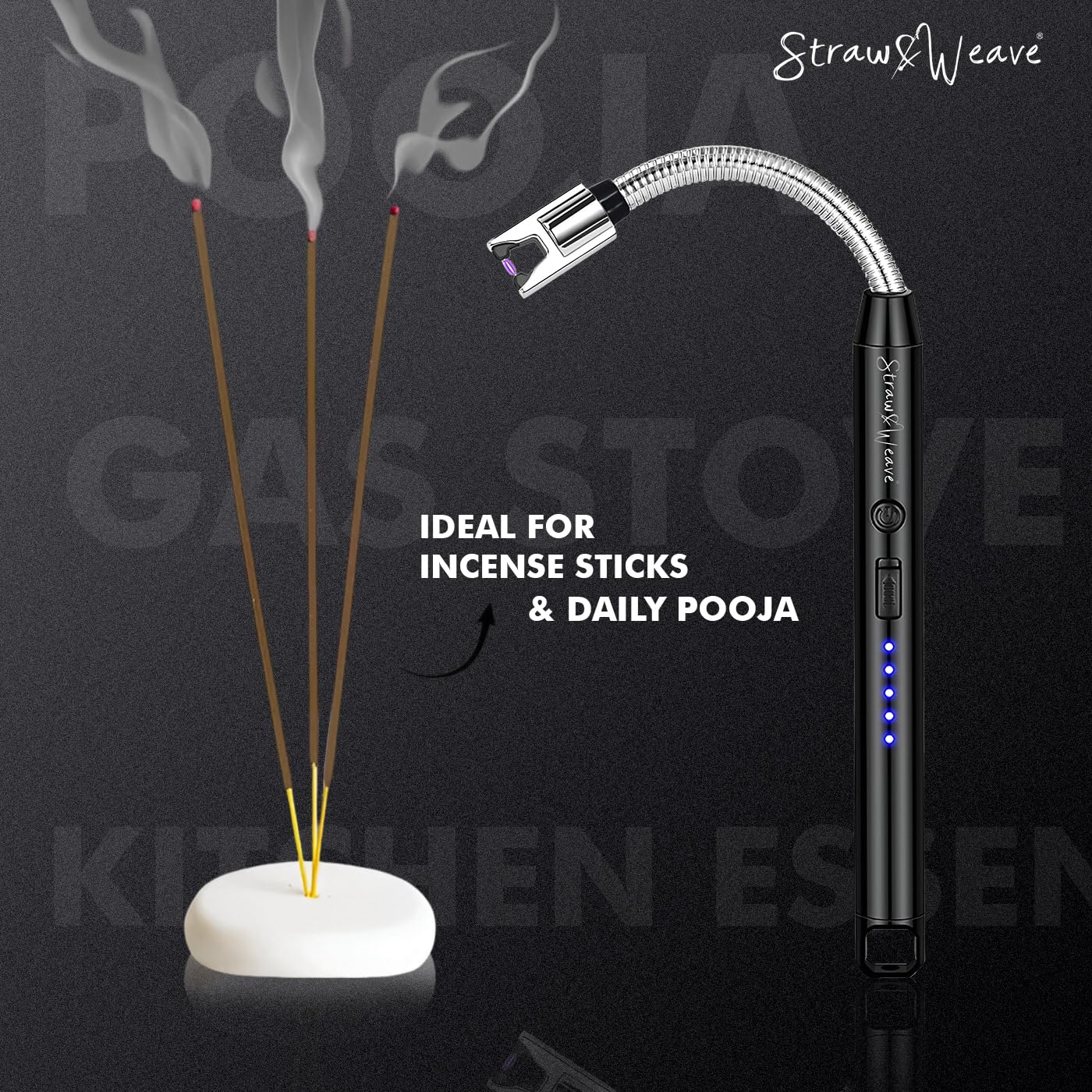 Rechargeable Electric Gas Lighter for Kitchen, Lighter for Gas Stove, Candles, Pooja, 1 Year Warranty, C-Type USB, Kitchen Tools, Multi Purpose – 360° Flexible & Windproof, Black