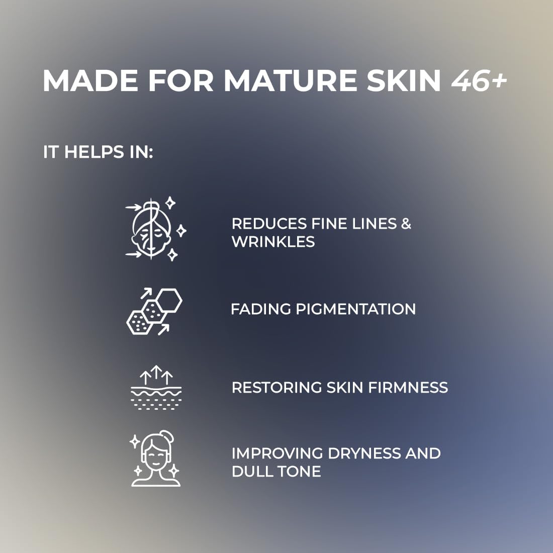 ANTI AGEING NIGHT CREAM FOR 46+: Specially formulated as an anti ageing night cream for women and men aged 46 and above, this rich cream targets visible signs of ageing like deep wrinkles, sagging, and dryness. A powerful night cream for women to restore firmness and radiance.