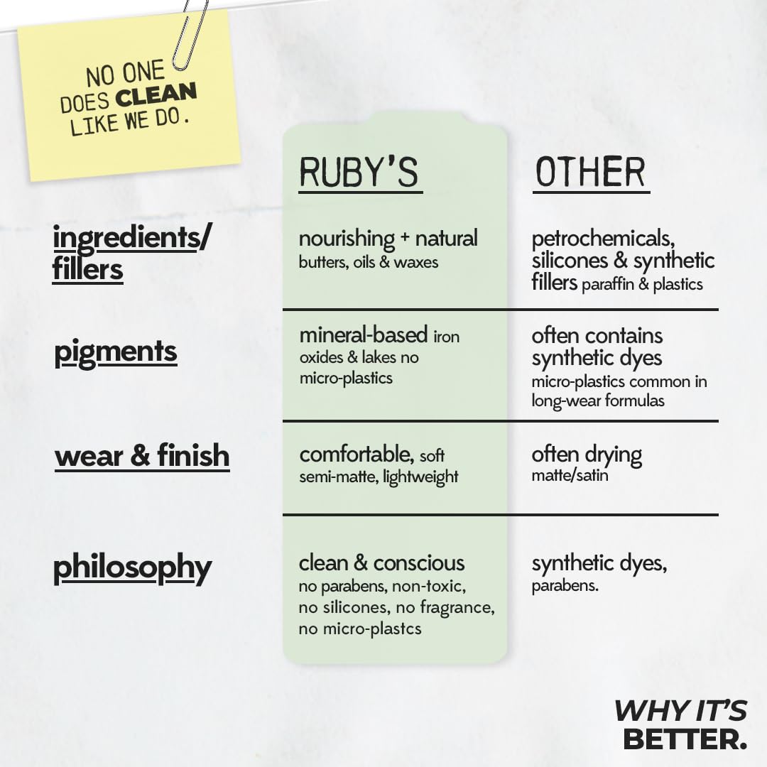 𝐒𝐞𝐦𝐢-𝐌𝐚𝐭𝐭𝐞 𝐋𝐢𝐩𝐬𝐭𝐢𝐜𝐤: Ruby’s Organics Semi-Matte Lipstick is formulated for all Indian skin tones, offering highly pigmented, moisturizing, and long-lasting wear. It’s lightweight and synthetic chemical-free, providing a guilt-free makeup experience.