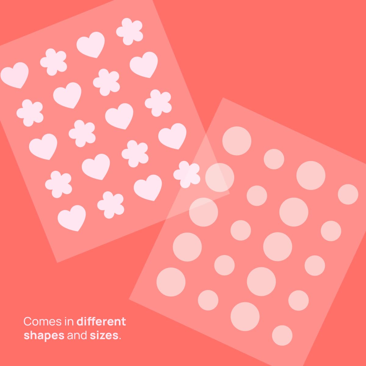 VERSATILE SIZING: Pack contains 56 patches in multiple sizes to accommodate different blemish types, available in discreet transparent and pink options for comfortable day or night wear