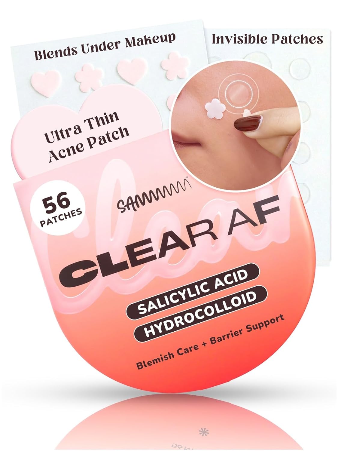 Sammmm Clear AF Blemish Cover Acne Patches with Salicylic Acid and Hydrocolloid, Transparent, 56 Patches