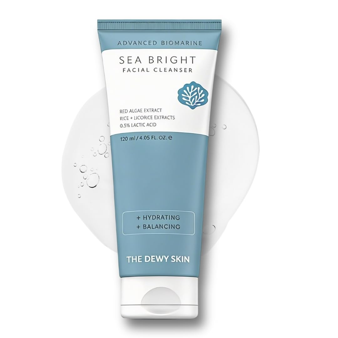 Sea Bright Hydrating Facial Cleanser with Rice, Licorice, Red Algae Extracts + 0.5% Lactic Acid | Gentle, Pore-Minimising, Barrier Supporting Face Wash for Men & Women | 120ml