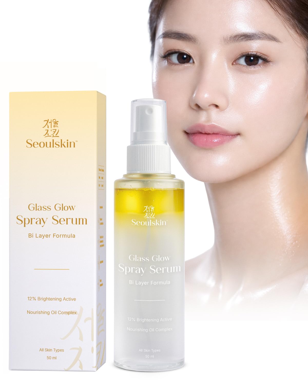Seoulskin Glass Glow Spray Serum | Oil + Serum Water | 12% Niacinamide + 2% Alpha Arbutin | with Vitamin E, Avocado, Olive & Tea Tree Oils | Brightening, Hydrating and Nourishing | Non-Comedogenic | All in One Mist | Korean Skincare (50 ml)