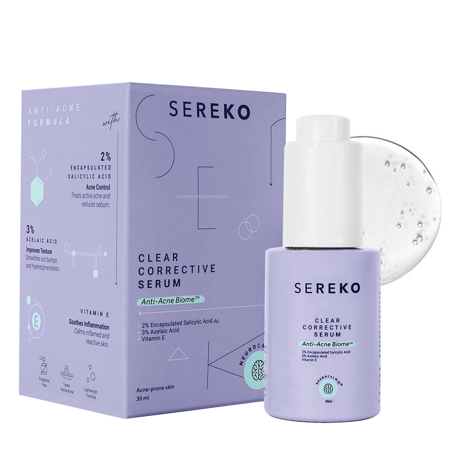 Sereko Clear Corrective Serum with 2% Encapsulated Salicylic Acid BHA & 3% Azelaic Acid | Active Acne | Reducing Sebum Production | Pigmentation & Dark Spots for Oily | Acne-Prone Skin 30ml – Pack 1