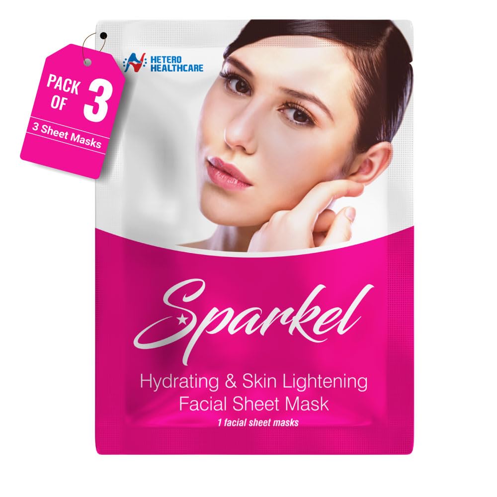 Sparkel Hydrating Face Sheet Masks for Glowing Skin | Facial Mask for Women & Men with Aloe Vera, Glycerin & Olive Leaf Extracts | Ideal for All Skin Types – Pack of 3