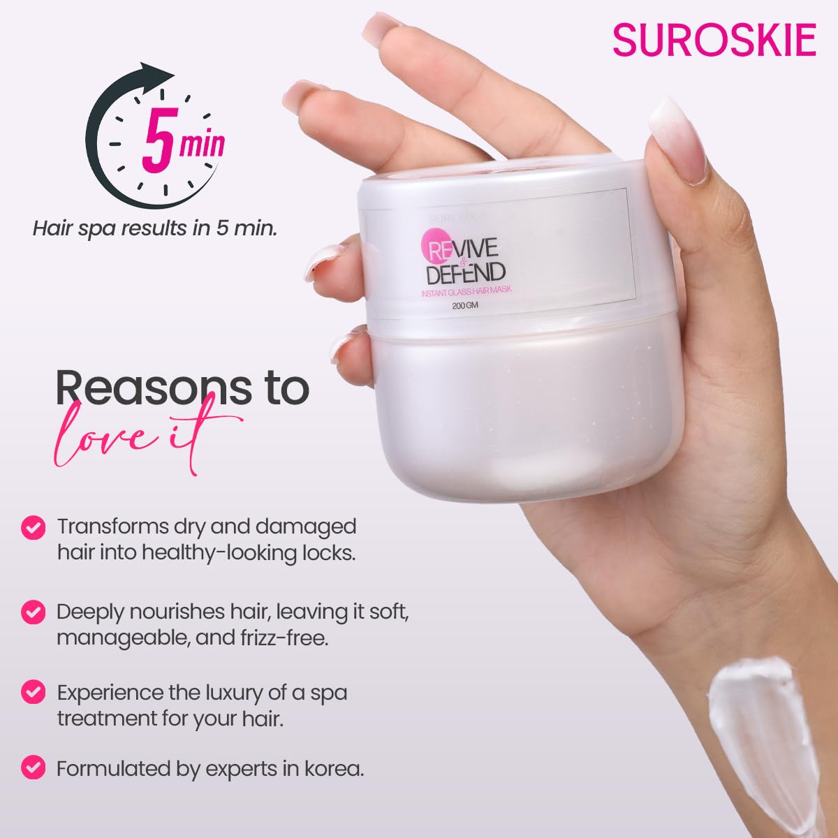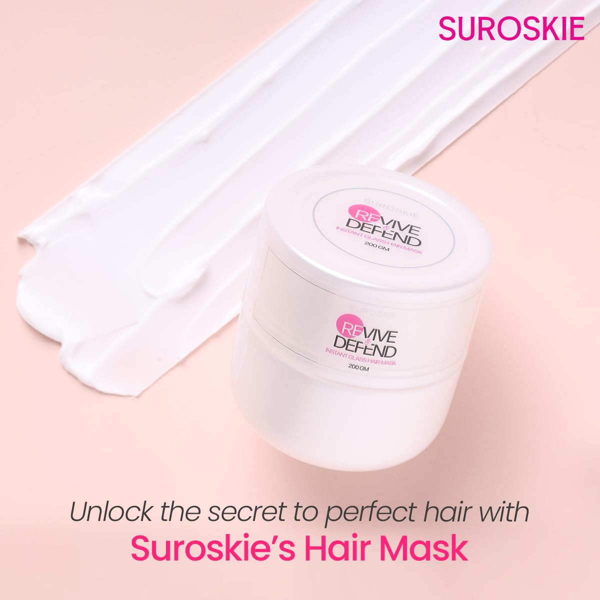 Suroskie Unscented Revive & Defend Instant Glass Hair Mask 200 Gm | Hydrolyzed Keratin & Murmuru Butter | Spa Treatment At Home For Dry Frizzy Hair | Intense Damage Repair Mask For Men & Women