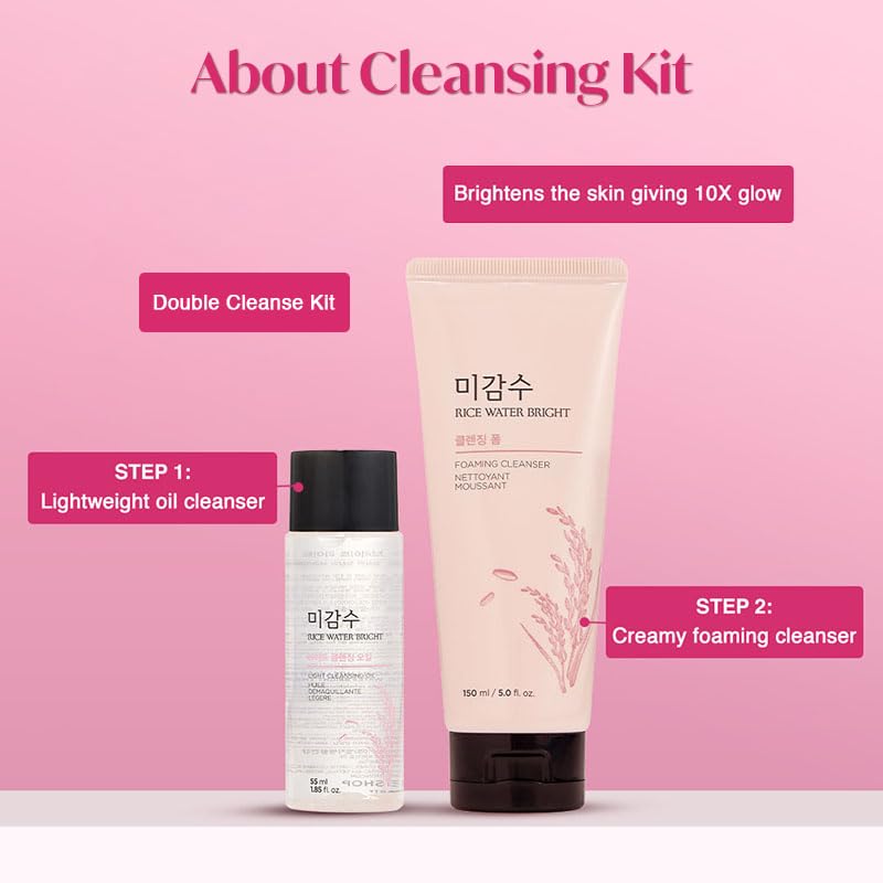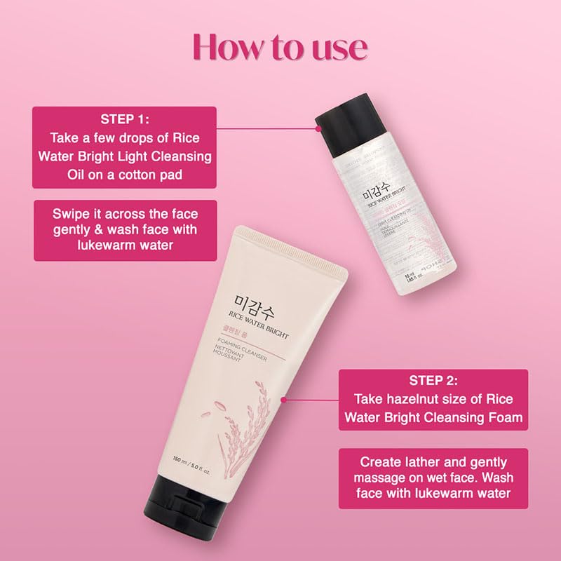 Double Cleansing Duo: Includes Rice Water Bright Light Cleansing Oil (55ml) and Rice Water Bright Cleansing Foam (100ml) for a complete, deep cleanse.