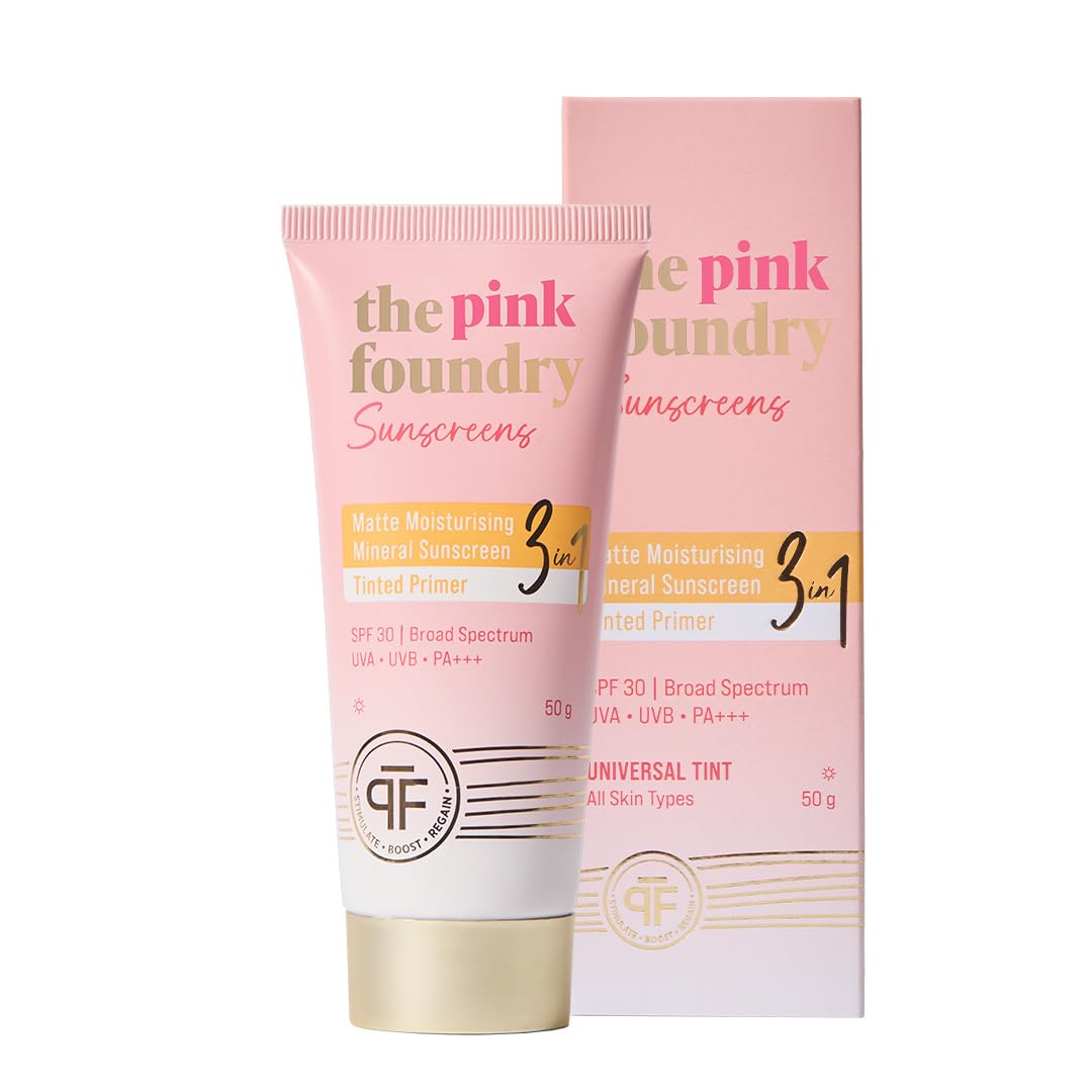 The Pink Foundry Matte Moisturising Mineral Tinted Sunscreen 50 g | SPF 30 PA+++ Broad Spectrum UVA UVB Protection | Zinc Oxide & Shea Butter | for Oily, Sensitive & all skin, Beige