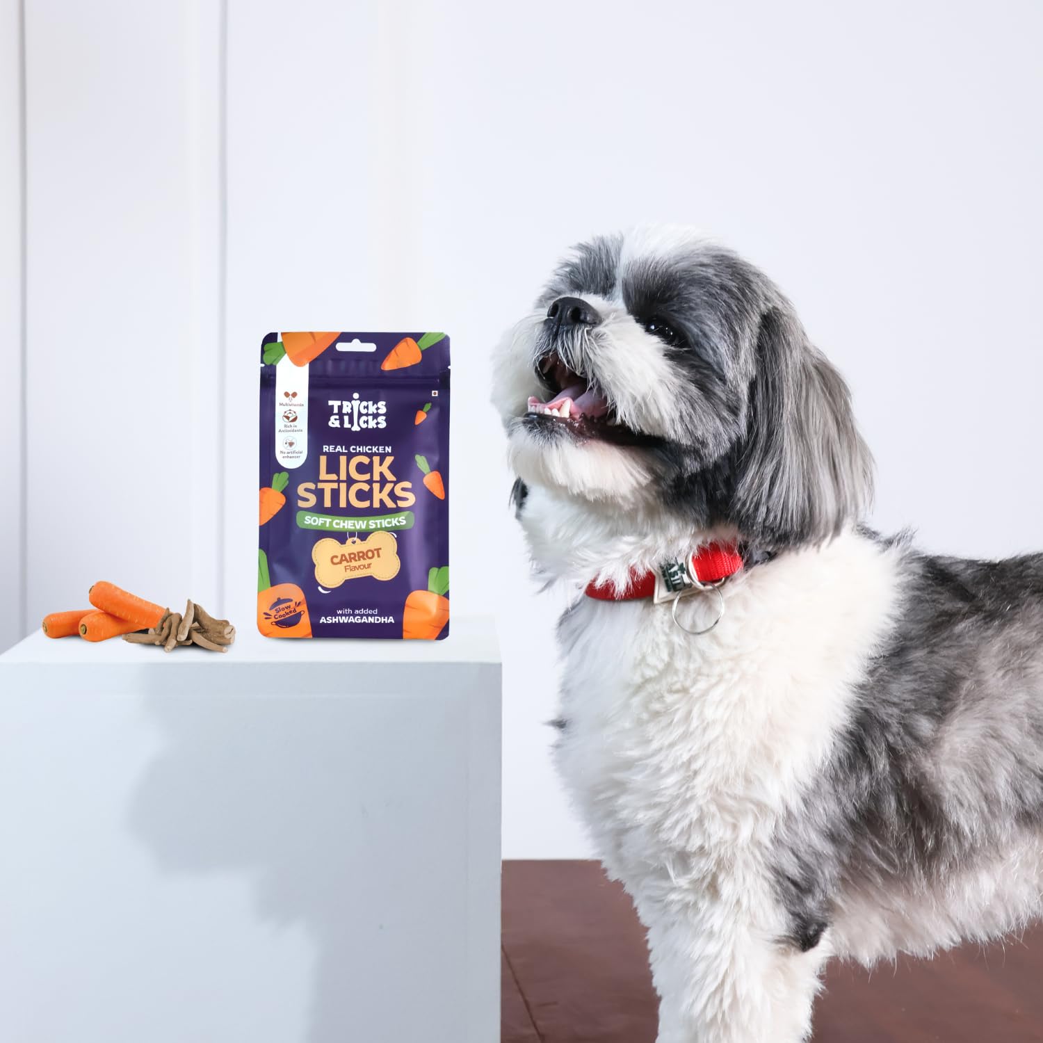 TRICKS & LICKS Carrot Dog Chew Stick for Puppies & Adult Dogs 70 gm -8 Stick| Real Chicken Soft Chews | Non Veg Dog Treats with Multivitamin & Ashwagandha | Dental Chews | Dog Food for All Breeds