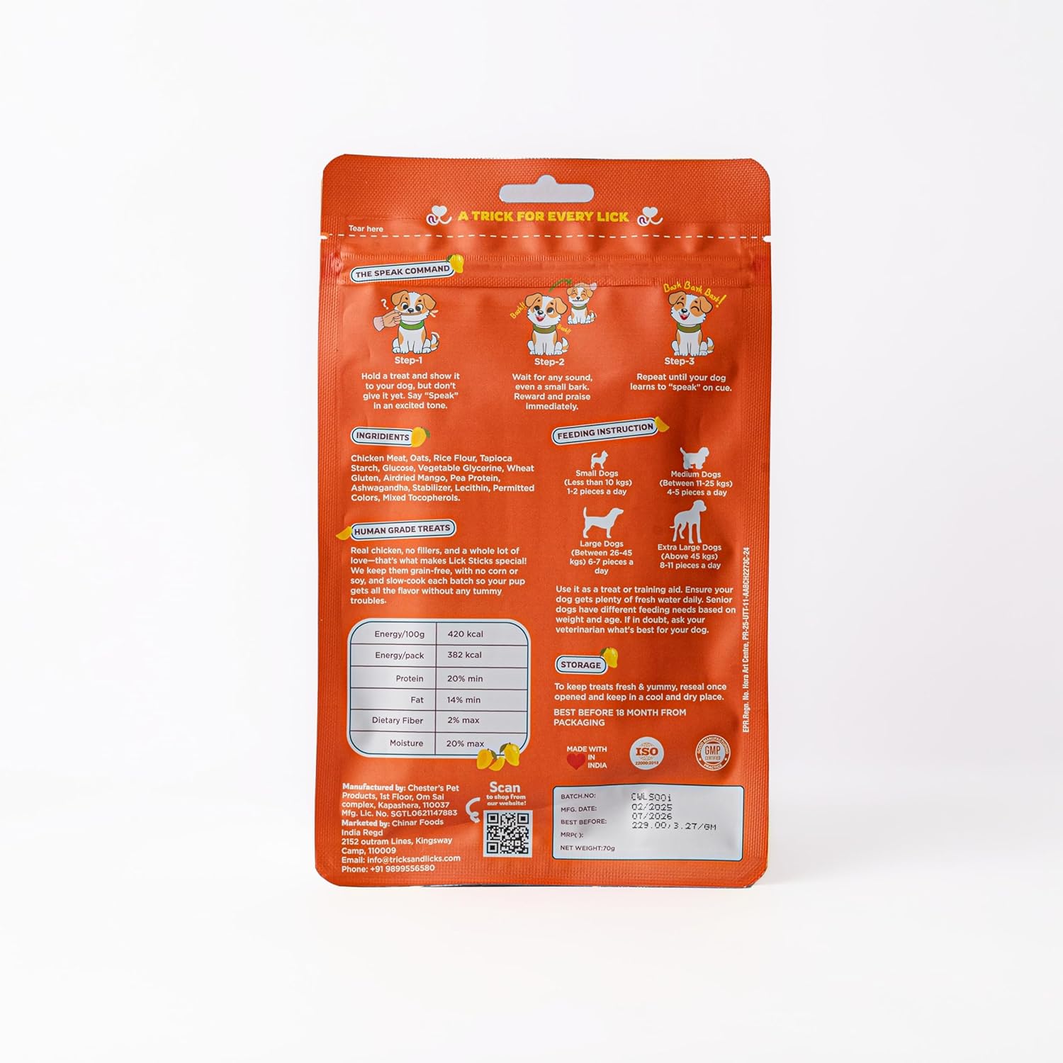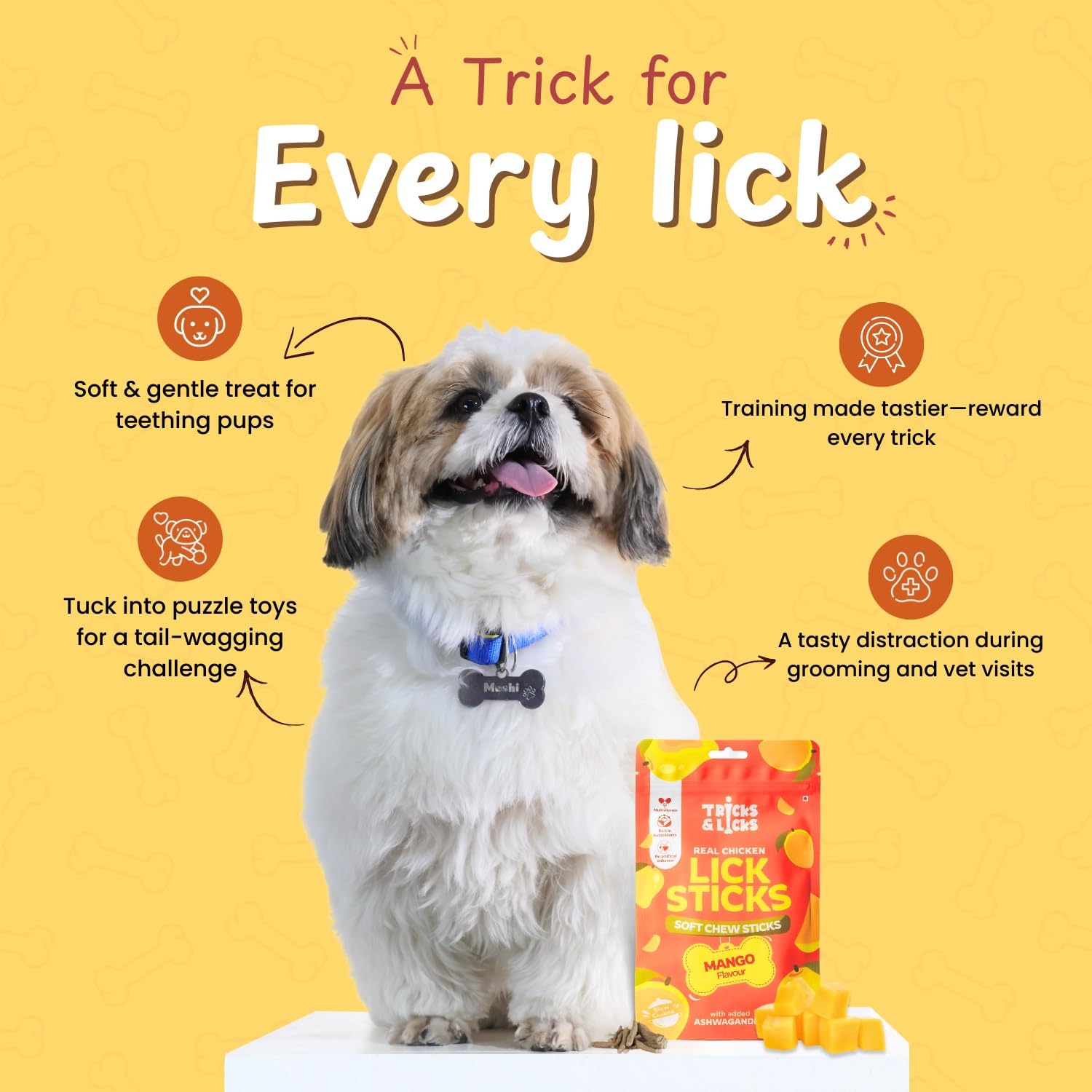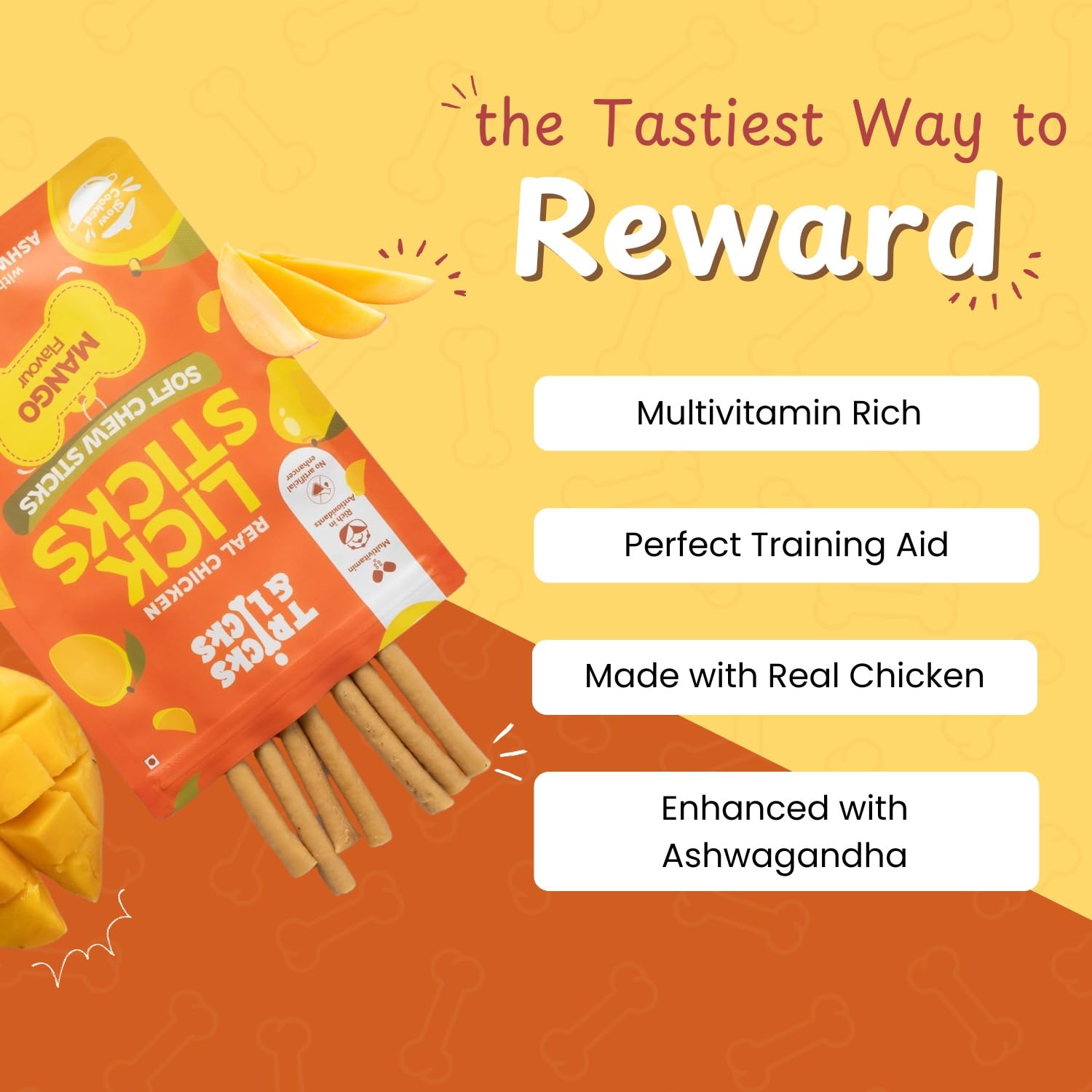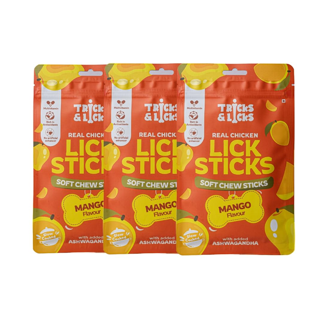 TRICKS & LICKS Mango Dog Chew Stick for Puppies & Adult Dogs 70 gm -8 Stick | Real Chicken Soft Chews | Non Veg Dog Treats with Multivitamin & Ashwagandha | Dental Chews | Dog Food for All Breeds