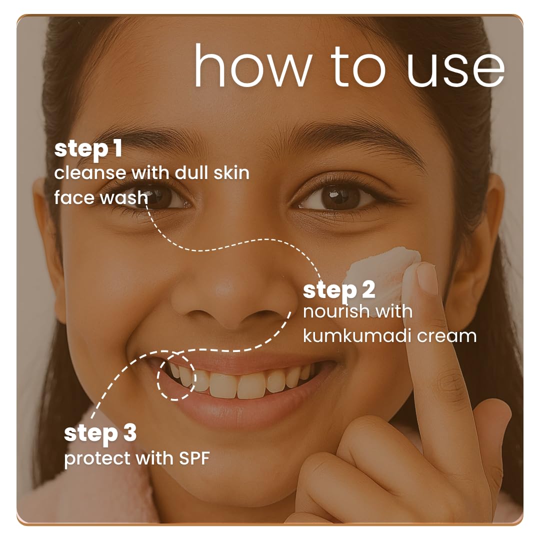 🌿 Ayurvedic Kumkumadi Power – Includes Kumkumadi Face Cream and Turmeric & Kakadu Plum Face Wash, infused with Kumkumadi, Manjistha, Red Sandal, Turmeric, and Kakadu Plum to brighten skin, reduce dull spots, and restore a healthy glow—specially crafted for kids’ delicate skin.